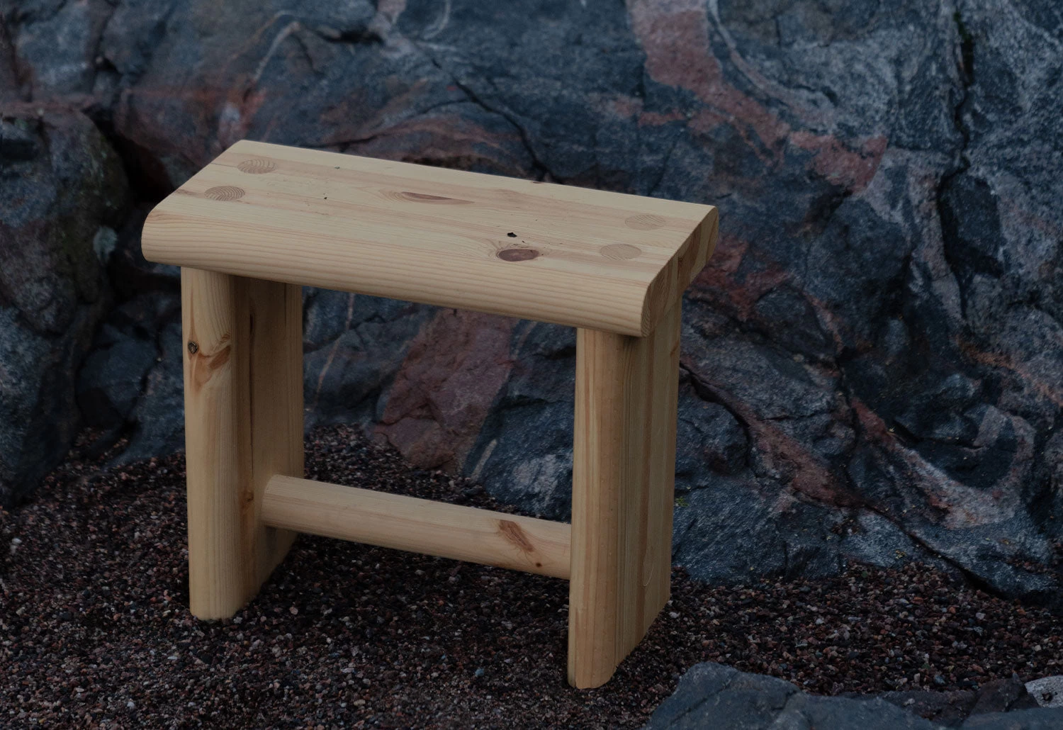 Masterfully crafted in Finland from thick, solid pieces of Finnish pinewood, the edges have been quietly refined with gentle curves. The sturdy stool features Vaarnii’s signature double circle dowels on the top of the seat.