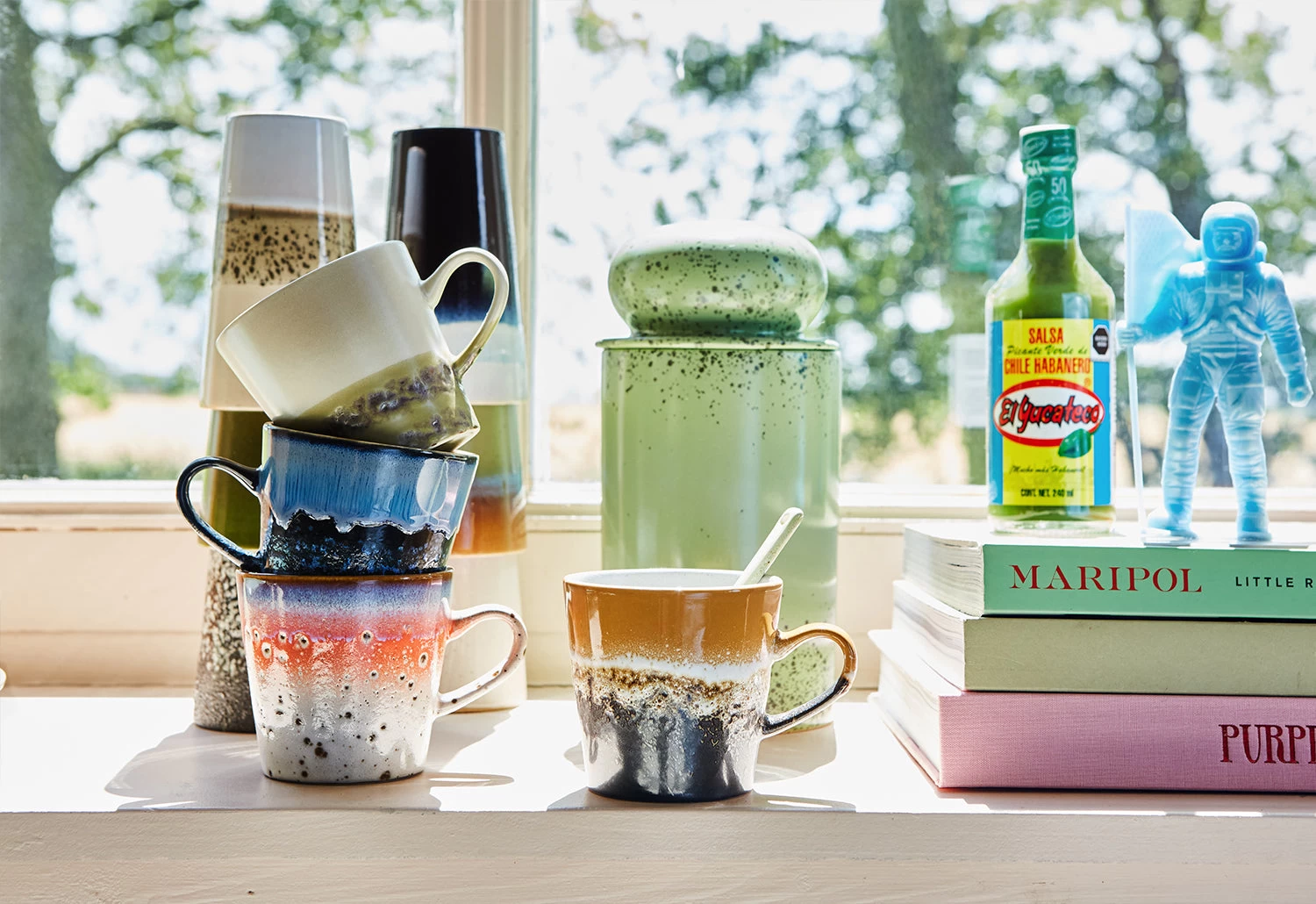 The 70s series is a popular stoneware ceramics collection comprising decorative, eye-catching kitchen and tableware. Designed by the Dutch interior brand HKliving®, the pieces are carefully finished by hand, providing each product with a unique expression.