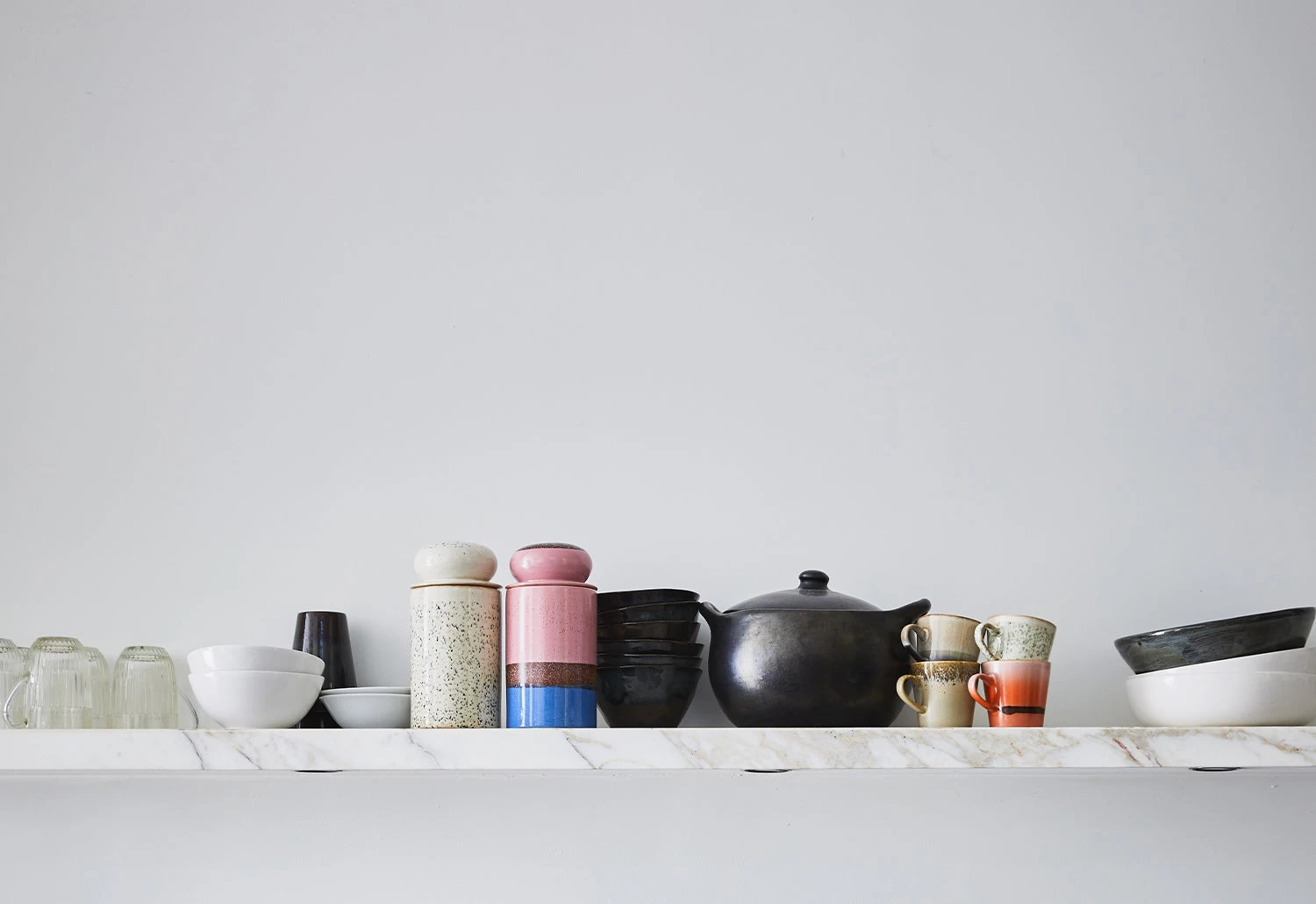 The 70s series is a popular stoneware ceramics collection comprising decorative, eye-catching kitchen and tableware. Designed by the Dutch interior brand HKliving®, the pieces are carefully finished by hand, providing each product with a unique expression.