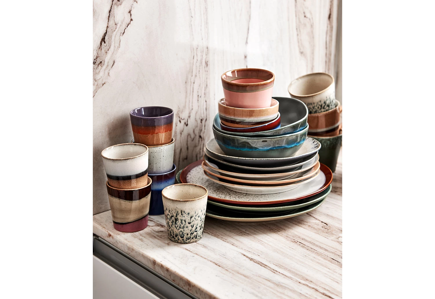 The 70s series is a popular stoneware ceramics collection comprising decorative, eye-catching kitchen and tableware. Designed by the Dutch interior brand HKliving®, the pieces are carefully finished by hand, providing each product with a unique expression.