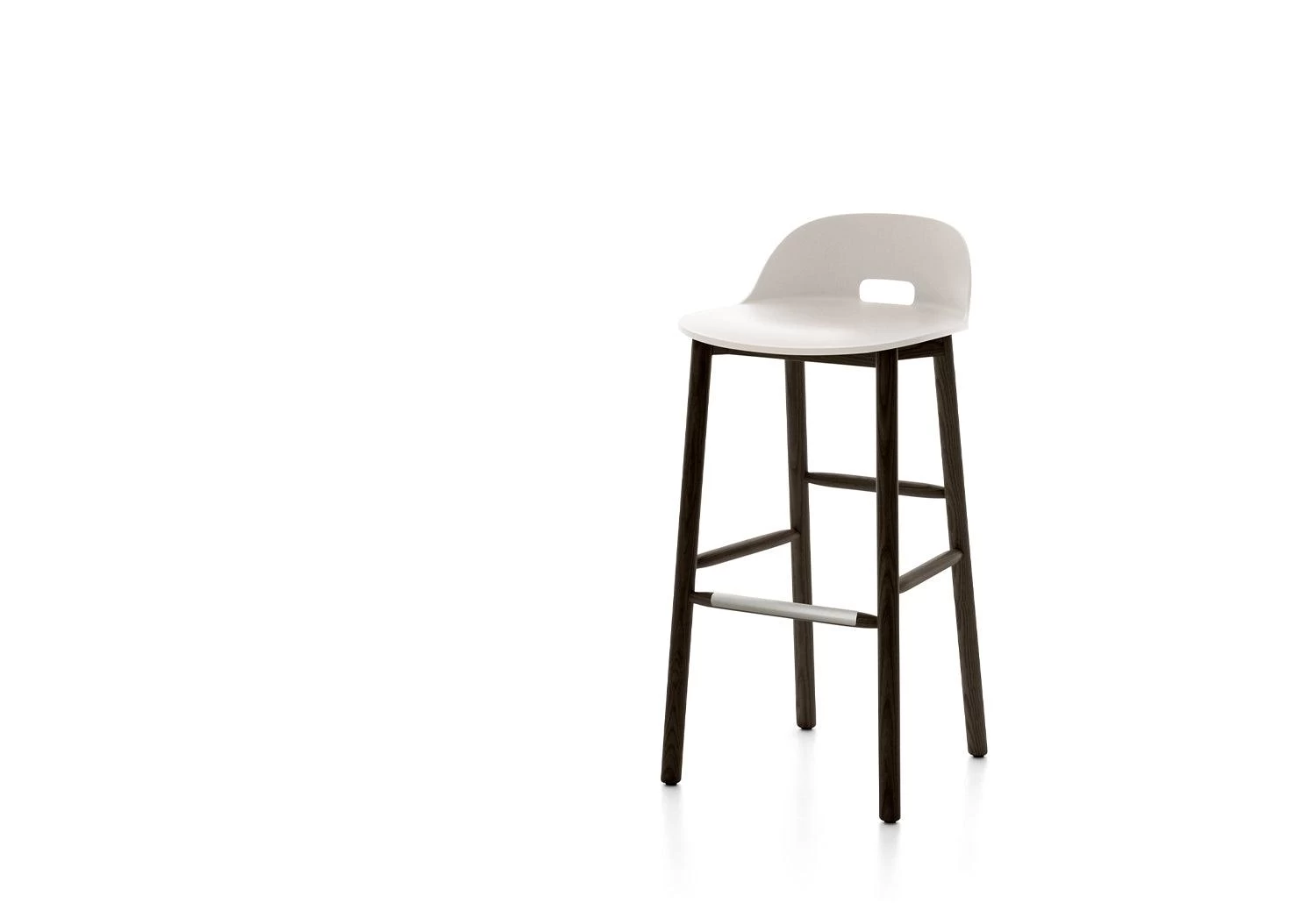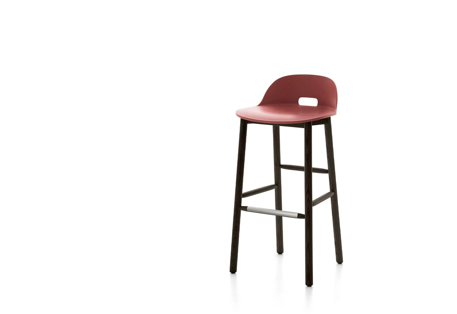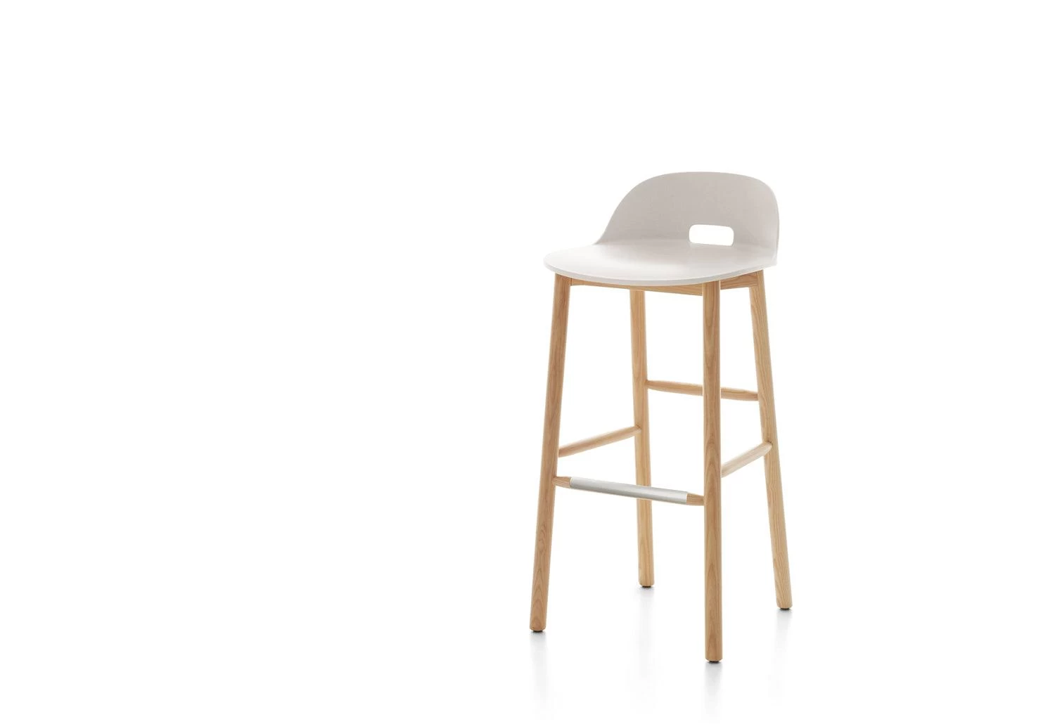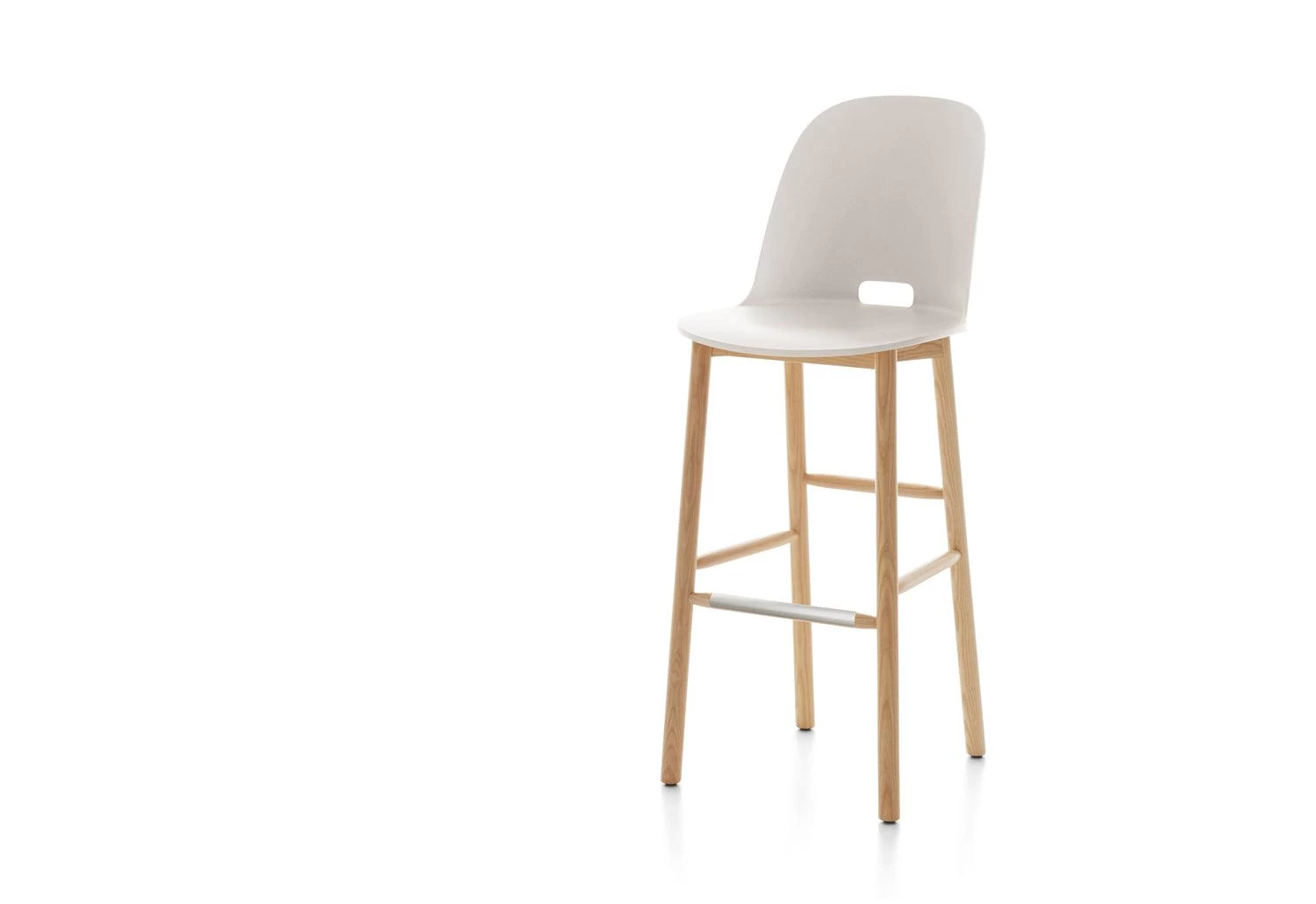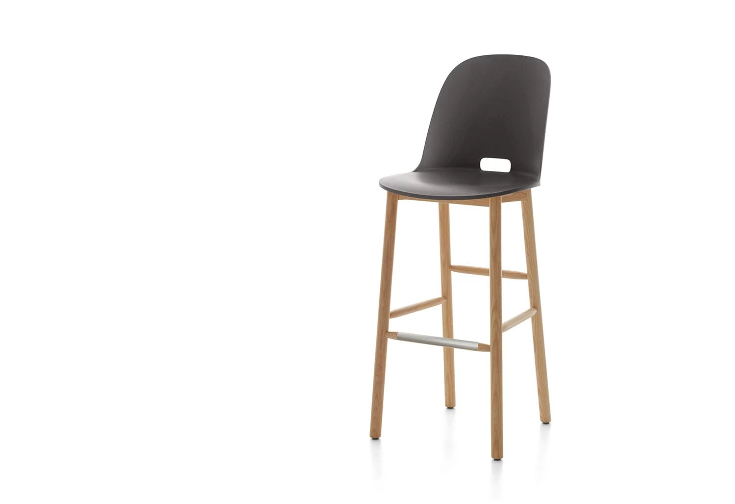 The Alfi bar stool bears the hallmarks of Jasper Morrison’s Japanese-inspired ‘super normal’ philosophy. Made from reclaimed polypropylene and wood fiber with solid ash legs, the Alfi stool has a minimalist profile and a timeless aesthetic.