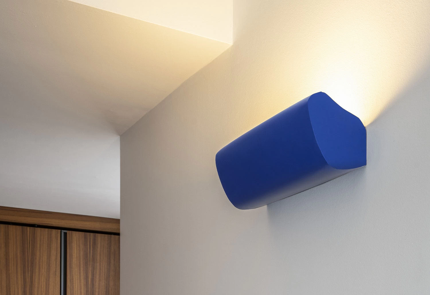 The lamp can be adjusted to emit a downlight for direct light or uplight for diffused light, allowing the user to personalise it to their space. It is also available in a selection of colours taken from the Unité d’Habitation, the iconic building designed by Le Corbusier: red, blue, white, orange and green.