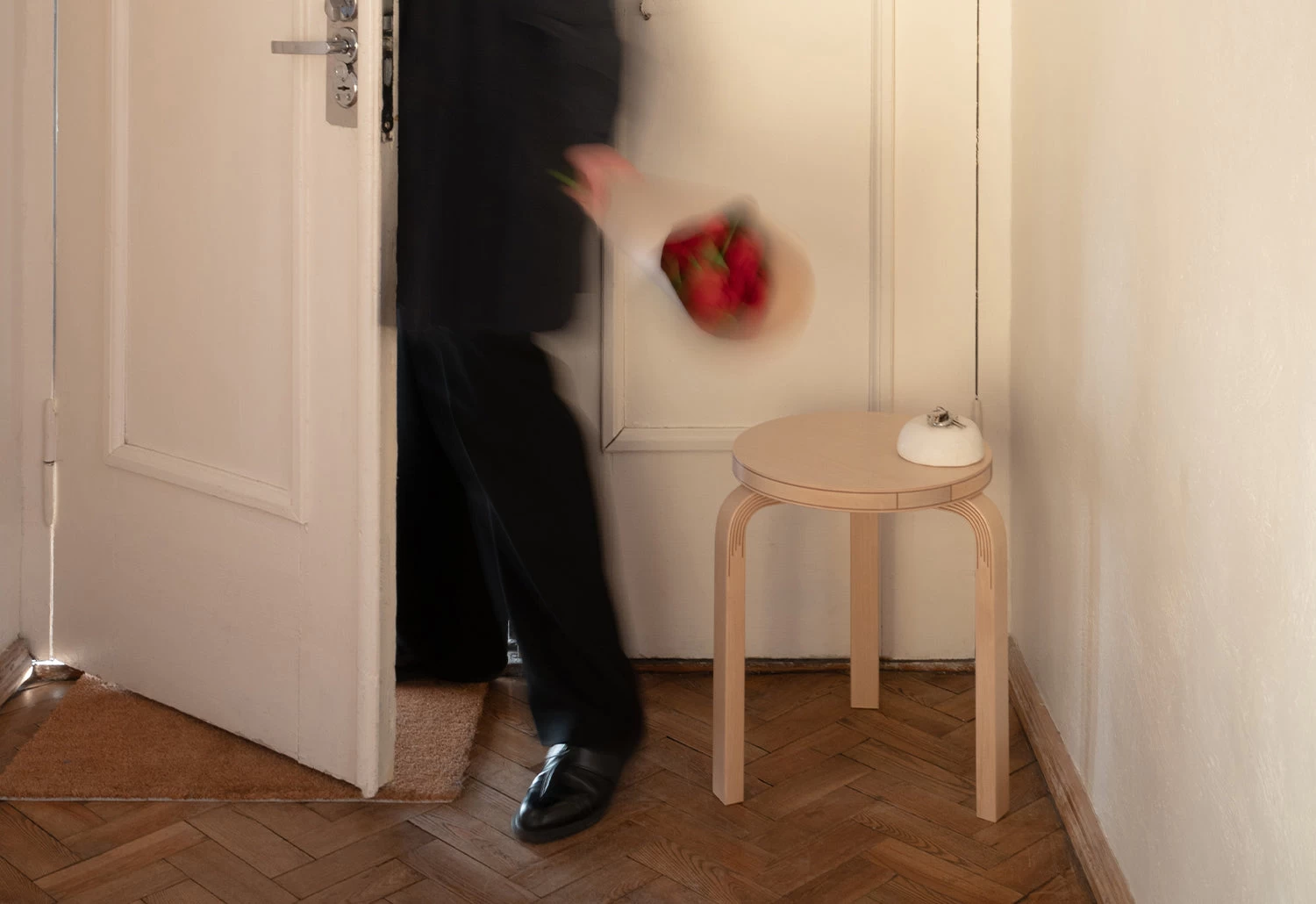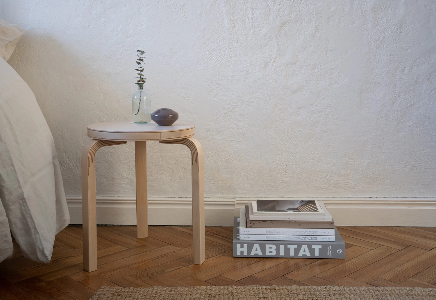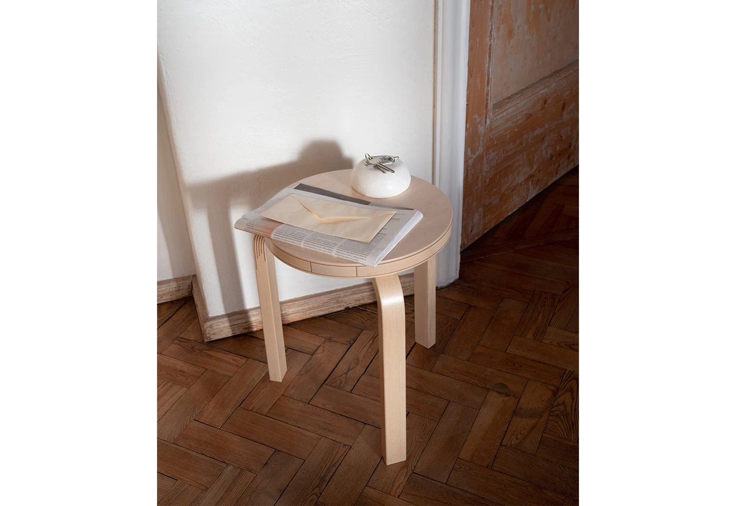 The Stool 60 Kontrasti Edition commemorates the 90 Years of Stool 60, celebrating its innovative construction. This special edition of the Stool 60 has been developed by Artek’s own design team, Kontrasti. The use of veneer sheets inserted into incisions in each leg of the birch wood provides the necessary flexibility to bend the wood into the desired L-shape. In the wood bending process, thermo-treated birch veneer in a contrasting tone is used to highlight the beauty of this great innovation.