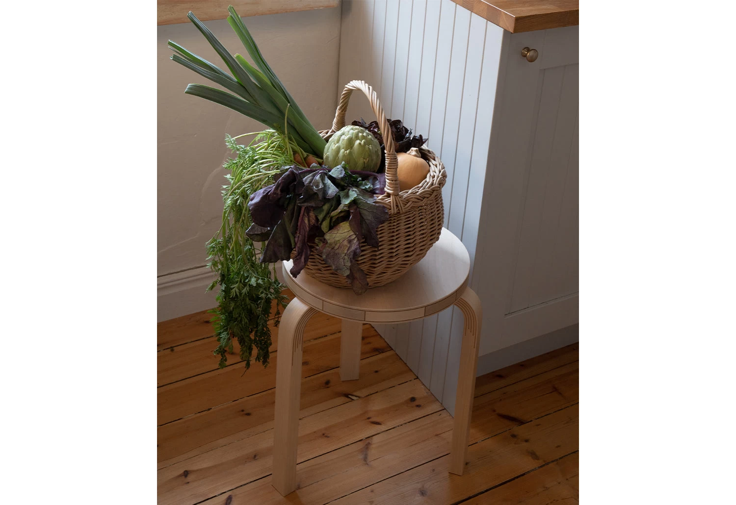 Additionally, the same darker veneer strips are used in the seat top, emphasising the economic use of wood offcuts from the legs in the construction of the seat. Like in 1933, this Stool 60 is made entirely from one raw material without complicated joinery. Stool 60 Kontrasti is a perfect example of responsible timber usage and holistic design thinking.