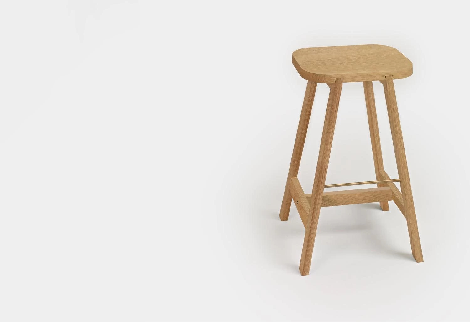 The sturdy and carefully crafted Bar Stool Three features a generous seat with gently rounded edges and a simple four-legged base.
