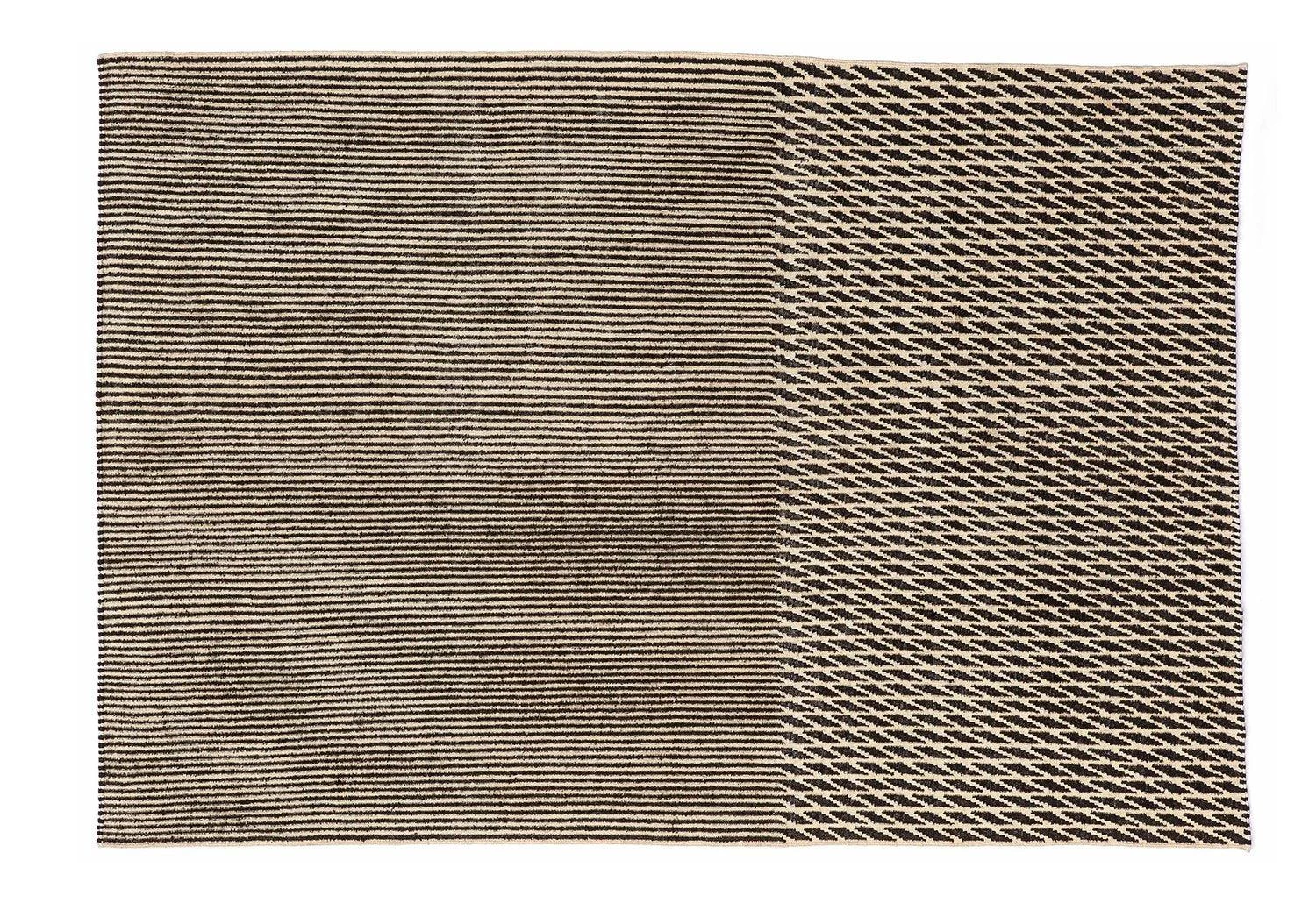 When the rug is seen at a distance, the pattern takes on a different surface giving the name to the collection. At a closer view of the rug, the lines and geometric shapes are revealed, giving it a different appearance.