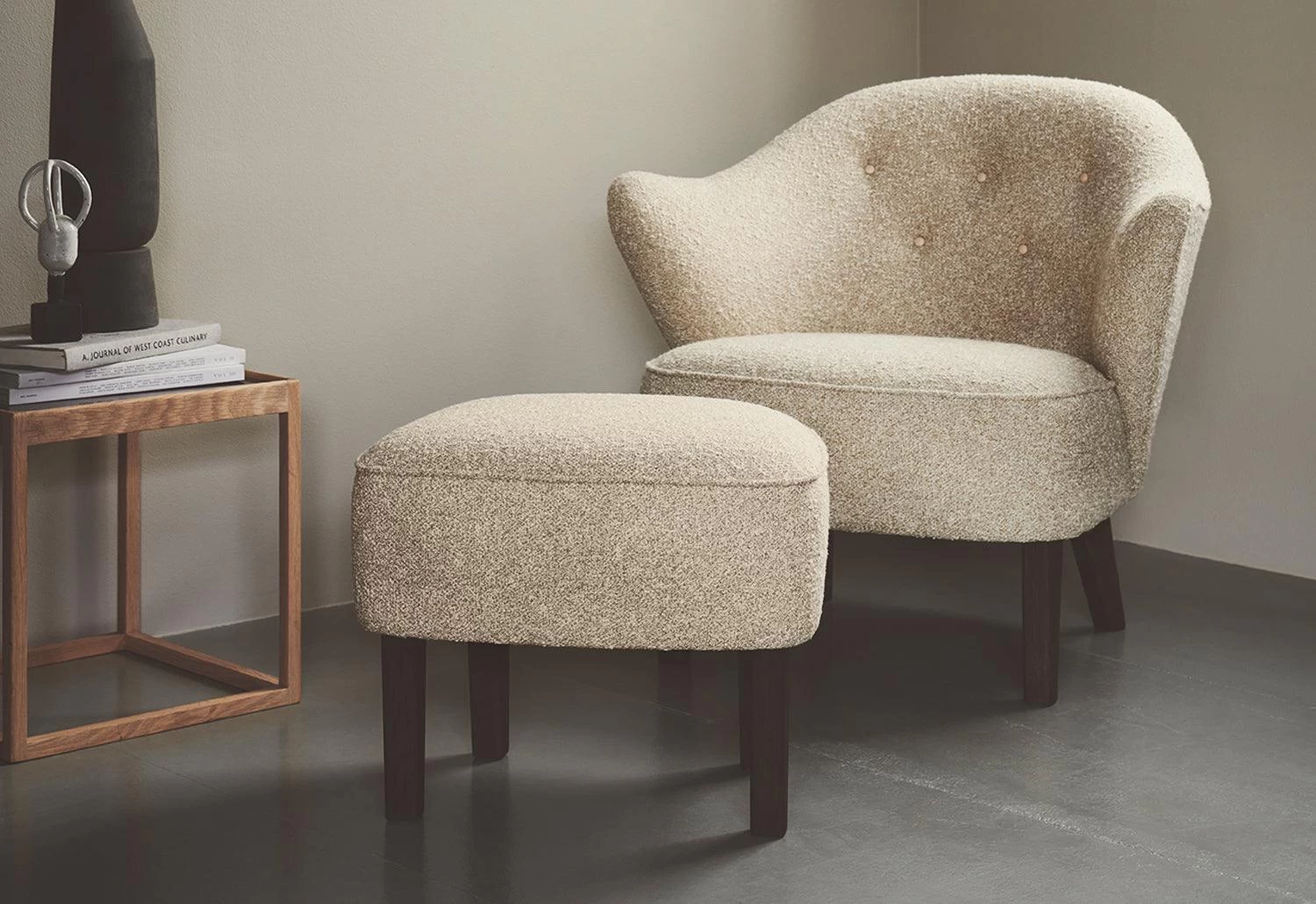 The Ingeborg footstool is a charming accessory to the Ingeborg chair. This small footstool is the ideal solution when you want to rest your legs or need an extra seat. The footstool is available in the same upholsteries as the chair and is made using the same hard-wearing materials and solid construction.