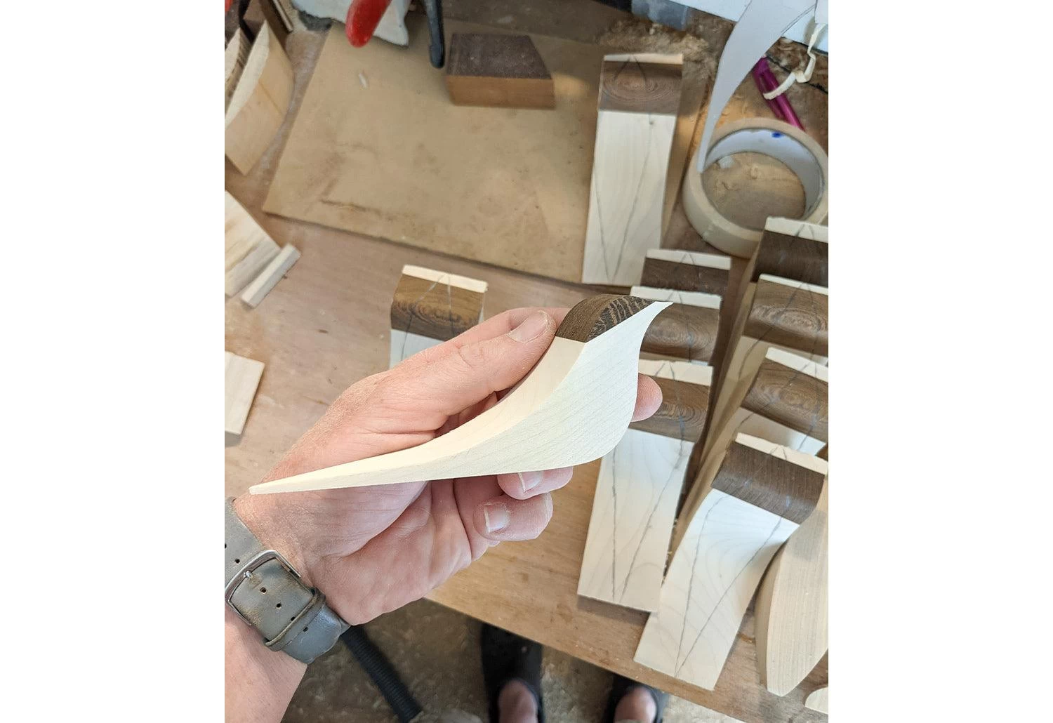 The body of the Tern is made from sycamore, and wenge reclaimed from the old restaurant floor at the National Theatre in London. The perch is made from cherry wood.