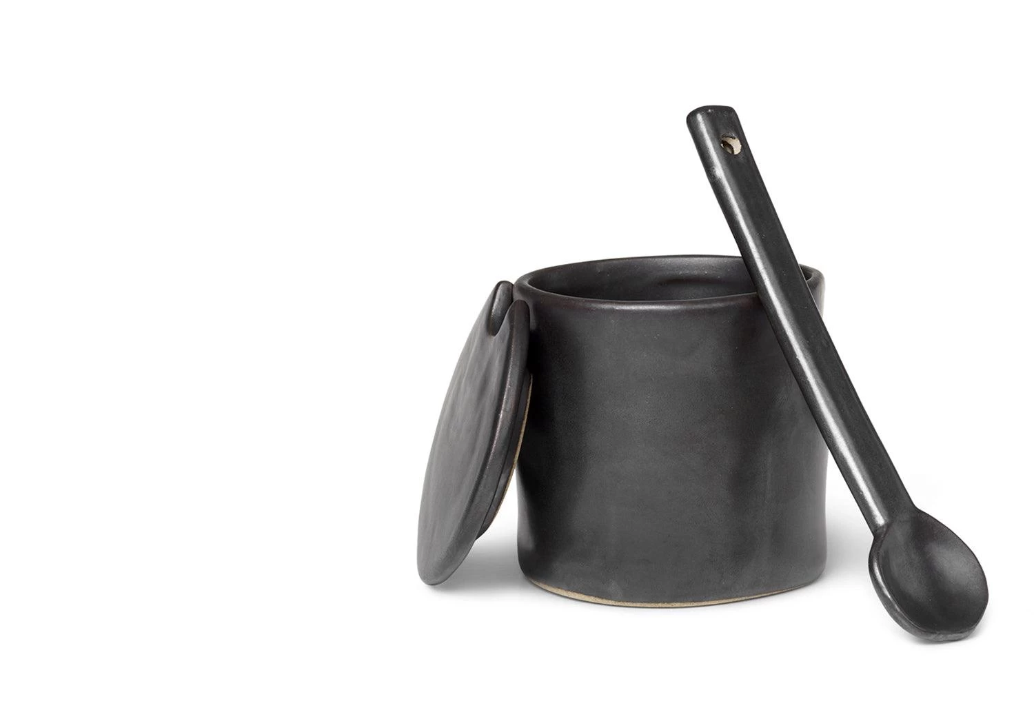 With a wobbling and imperfect form and semi-matt glaze, the Flow jar with a spoon is a contemporary design which captures the process of hand-made ceramics. Its simple and refined form is ideal in any kitchen, for holding, salt, sugar or spices.