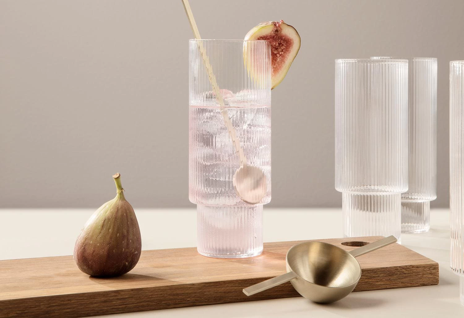 This set of tall glasses is suited to serving long cold drinks or cocktails requiring a highball glass.