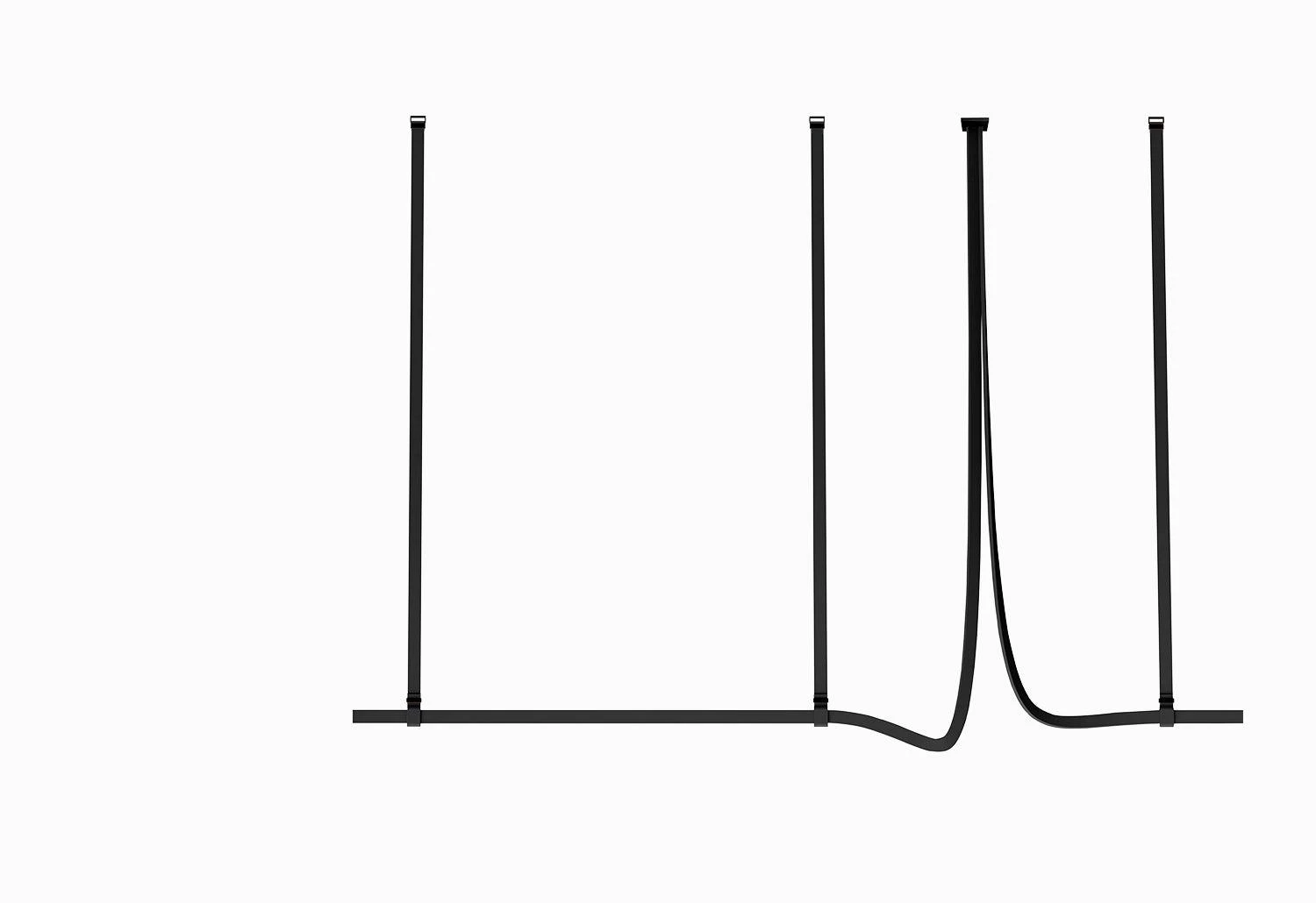 The Belt light marries leather with LED lighting to bring a suspended, sinuous installation that explores the balance between softness and rigidity. An unlikely but harmonious combination, the light is controlled by leather straps, with some supporting the weight, others carrying electricity and the rest containing light.