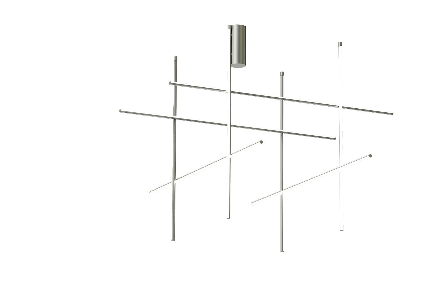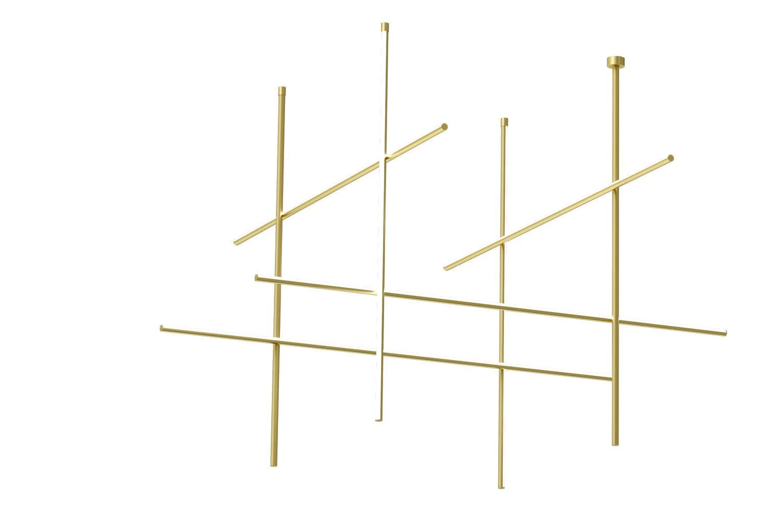 The Coordinates Ceiling is composed of horizontal and vertical luminaires arranged in a unique composition. Part of the geometric Coordinates lighting range designed by Micheal Anastassiades in 2020. The Coordinates have a contemporary style with each element made of extruded anodized aluminium with a champagne finish.