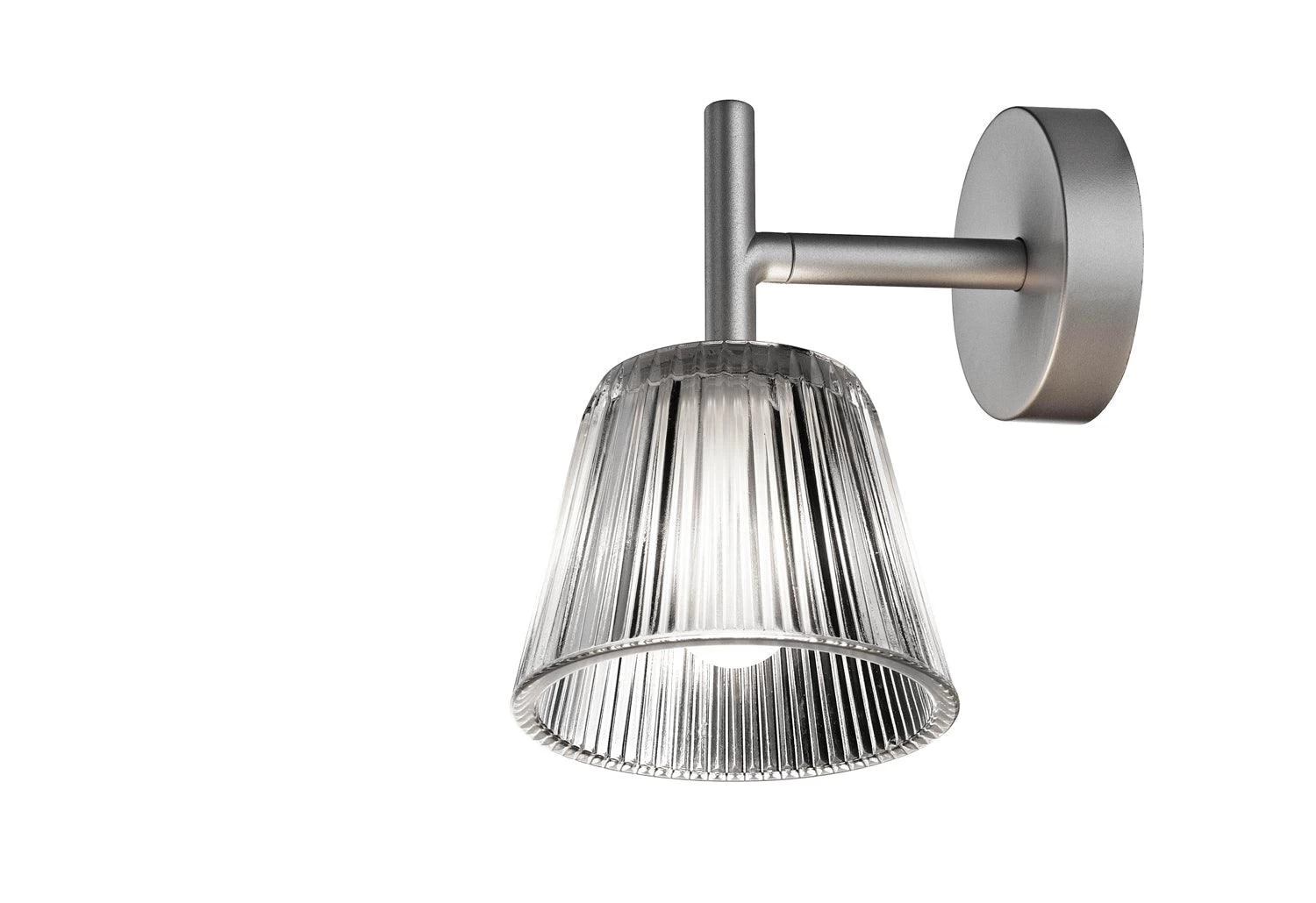 The Romeo Babe W wall light provides softly diffused light through an acid-etched borosilicate glass internal diffuser and pressed clear glass shade.
