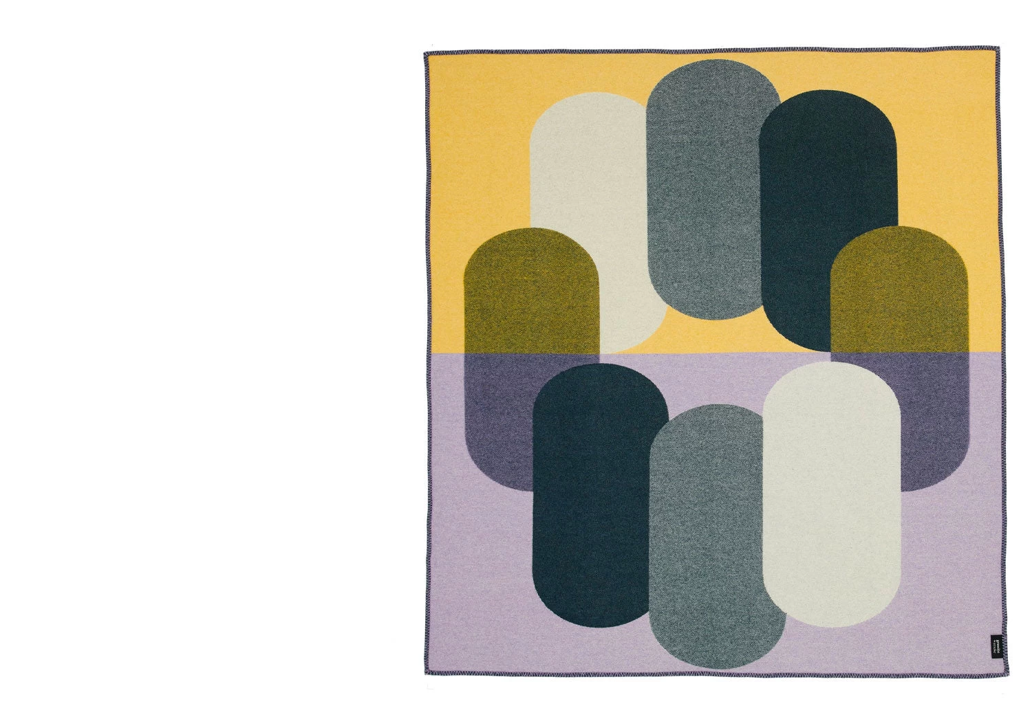 Designed by Granite + Smoke, the Gradient Pill Blanket features two bold, graphic motifs in shades of purple, yellow and blue. Inspired by London’s brutalist architecture and modernist colours, the throw is a double-sided display of two similar striking designs.