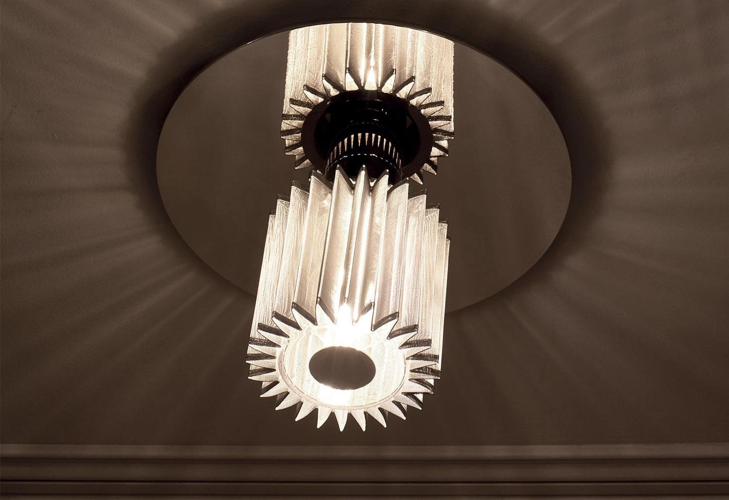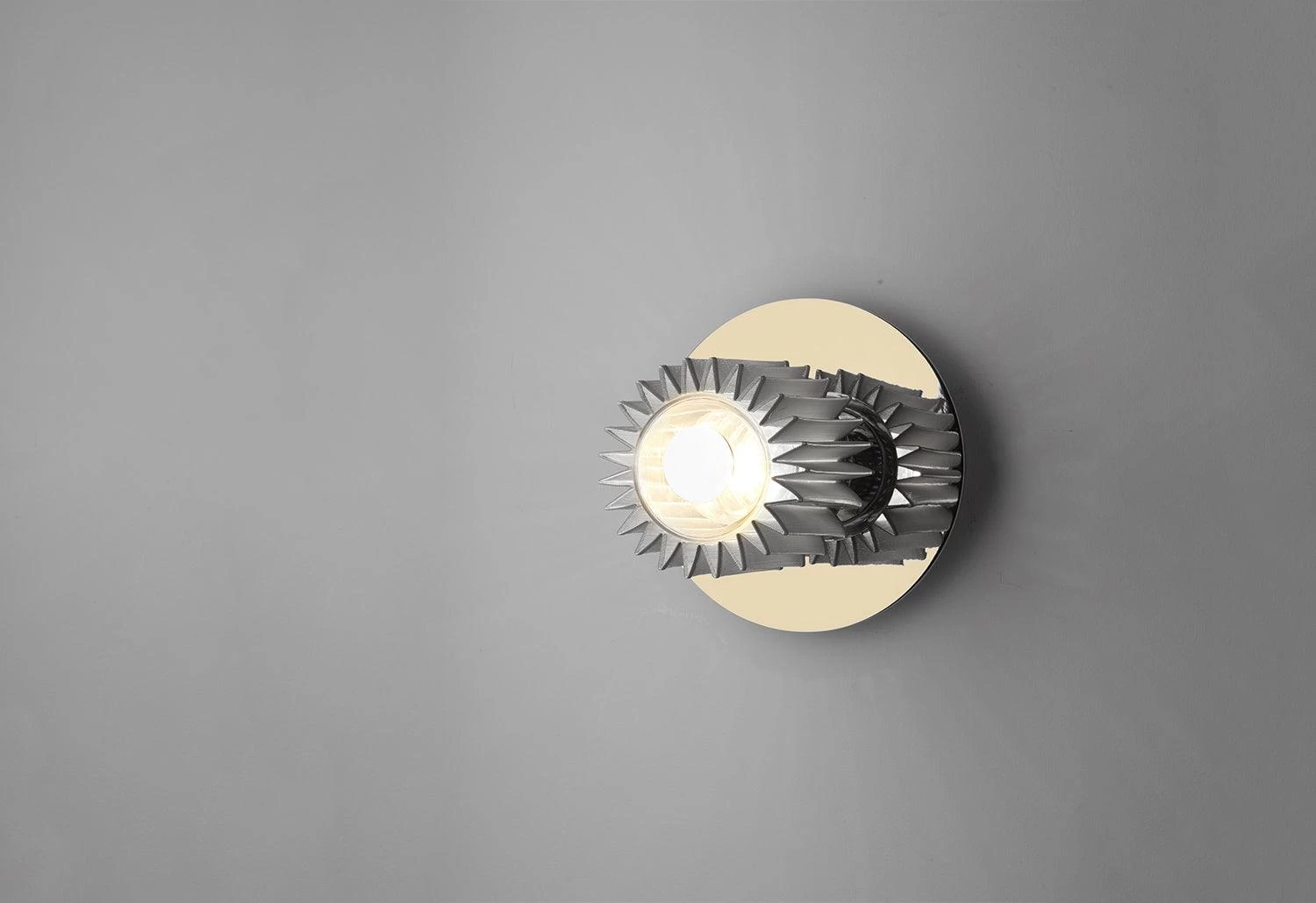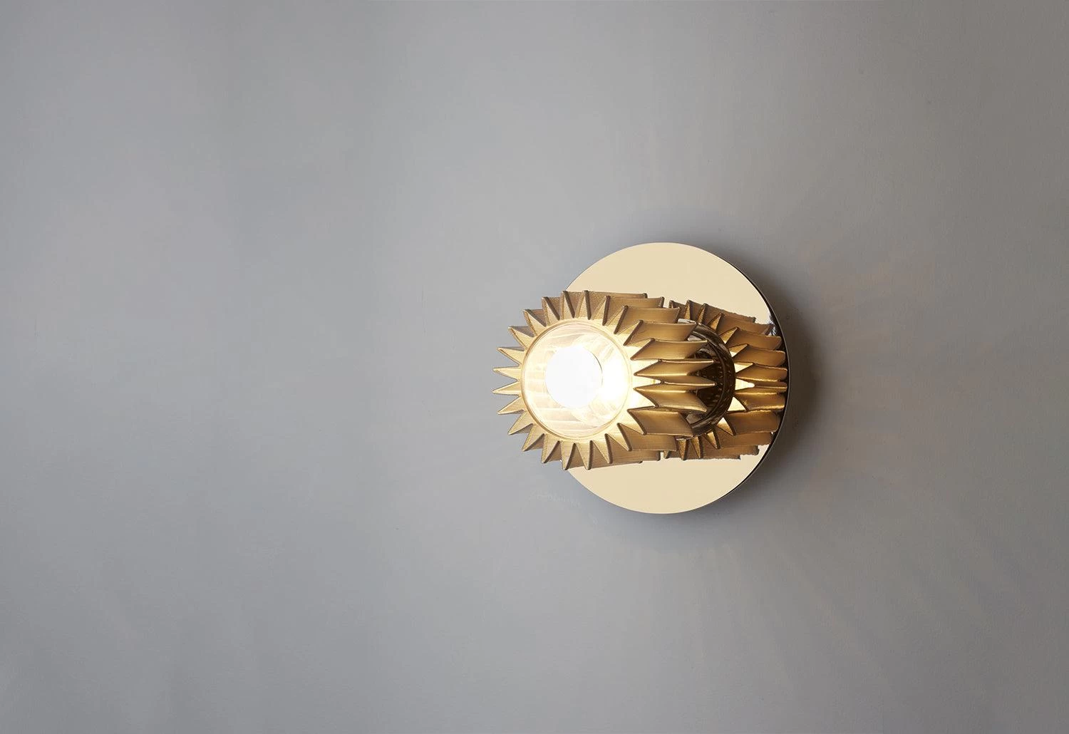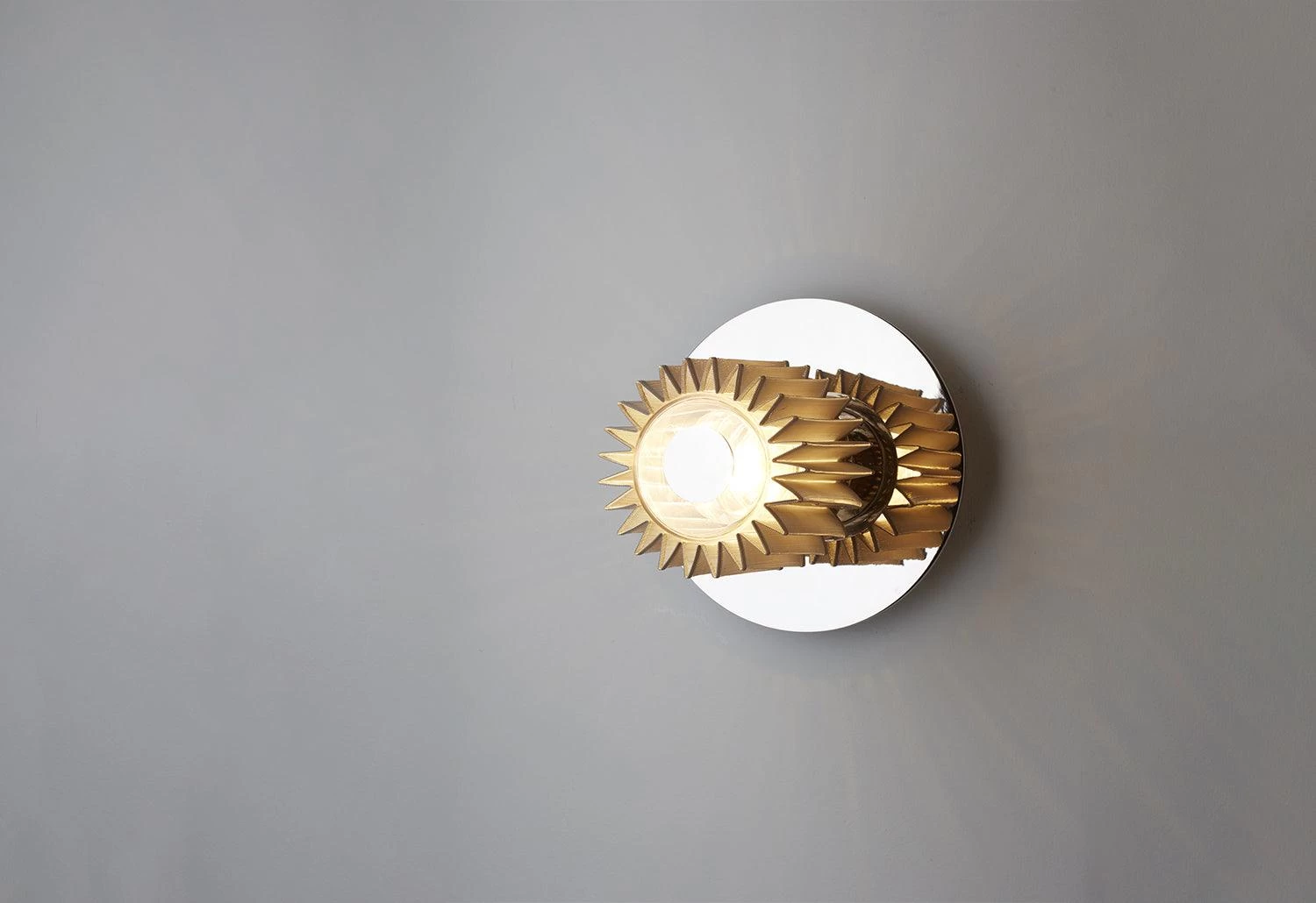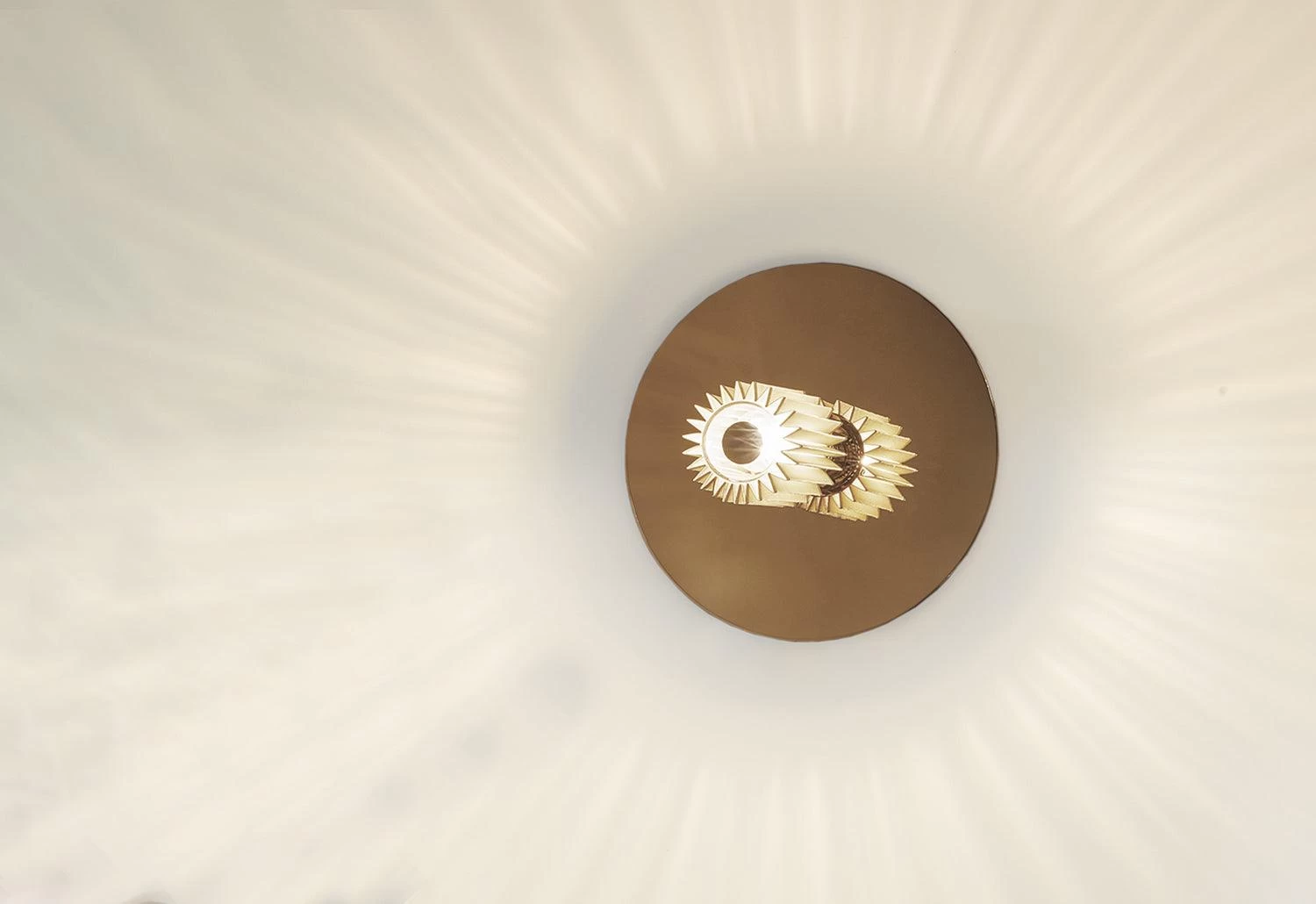 Inspired by the warm light of our star, In The Sun radiates hues of gold and silver to create a highly adaptable wall or ceiling light.
