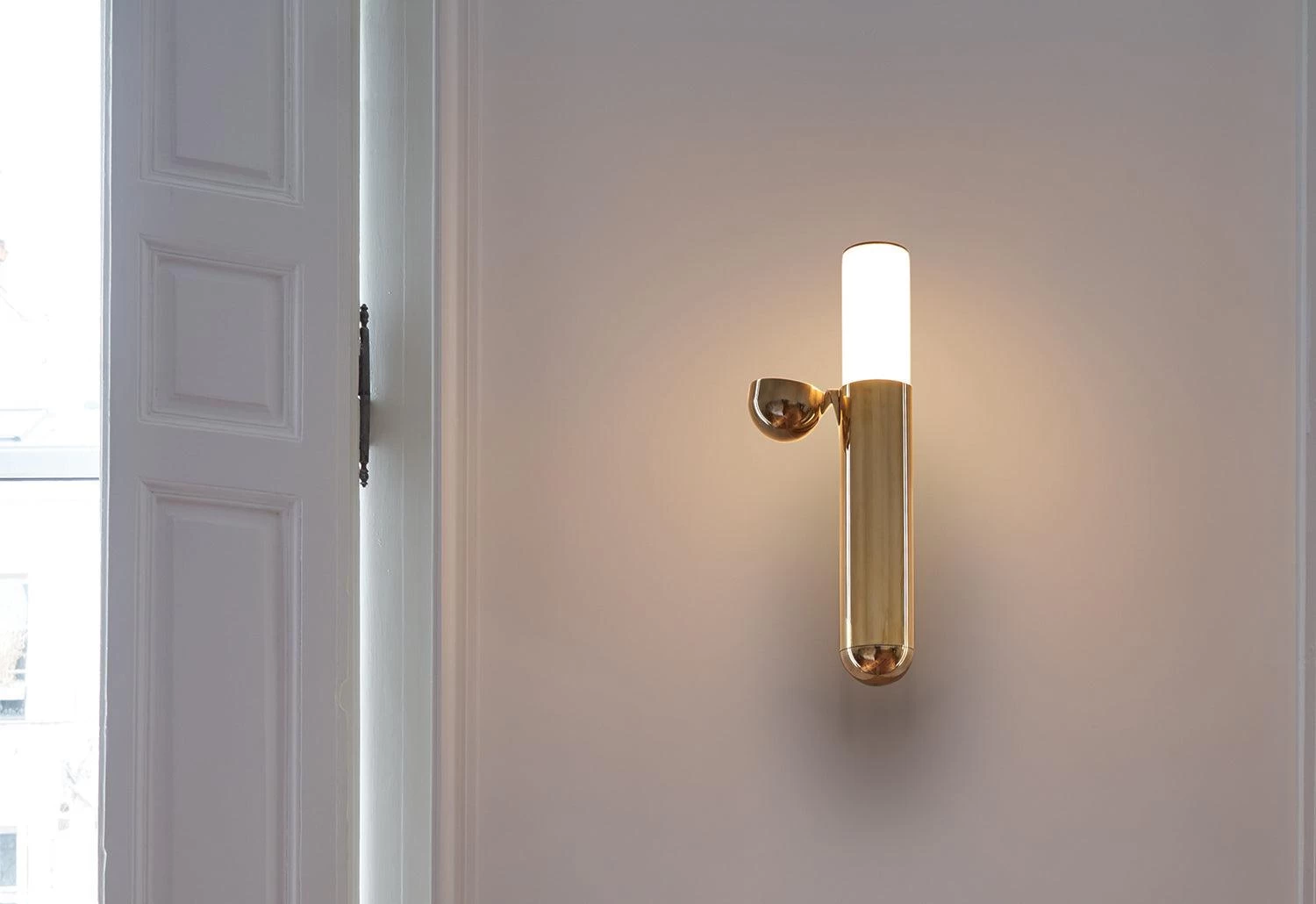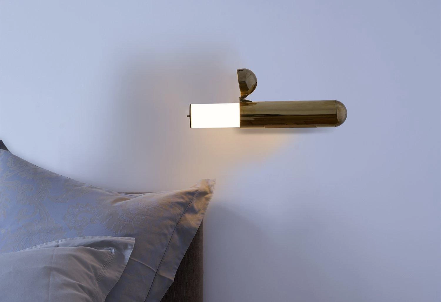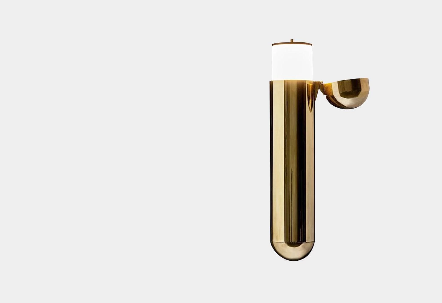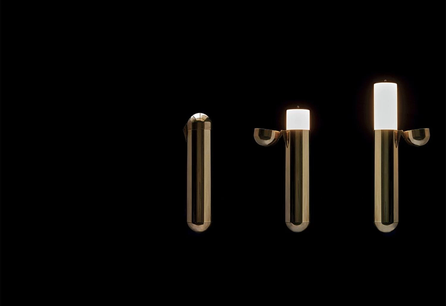 When the light is completely revealed, it diffuses a comfortable yet powerful light. When the light is slid further into the brass tube, the light takes on a warmer quality.