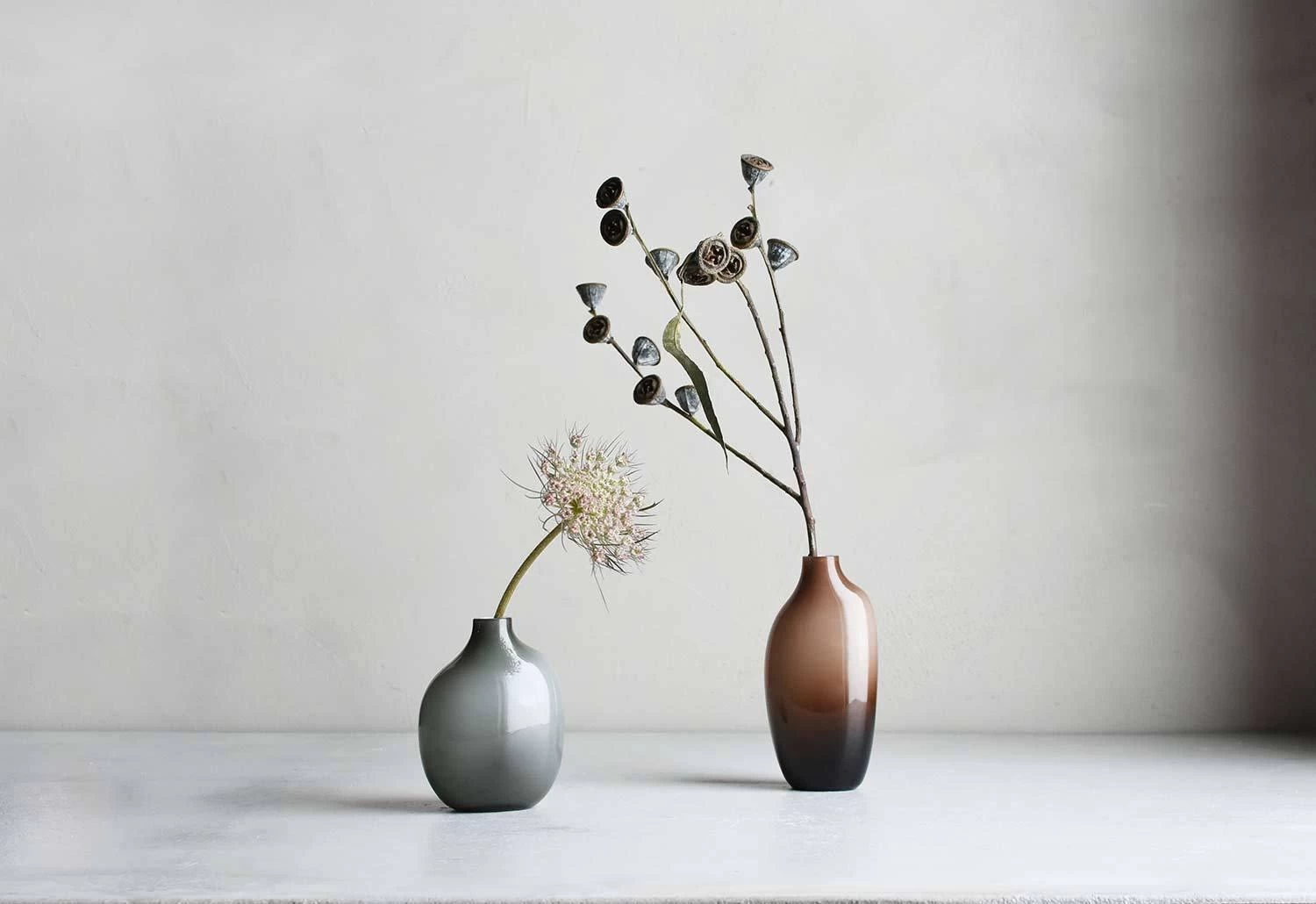 The sculptural Sacco vase works well in pairs or groups – pair different flowers with vases and create your own flower compositions.