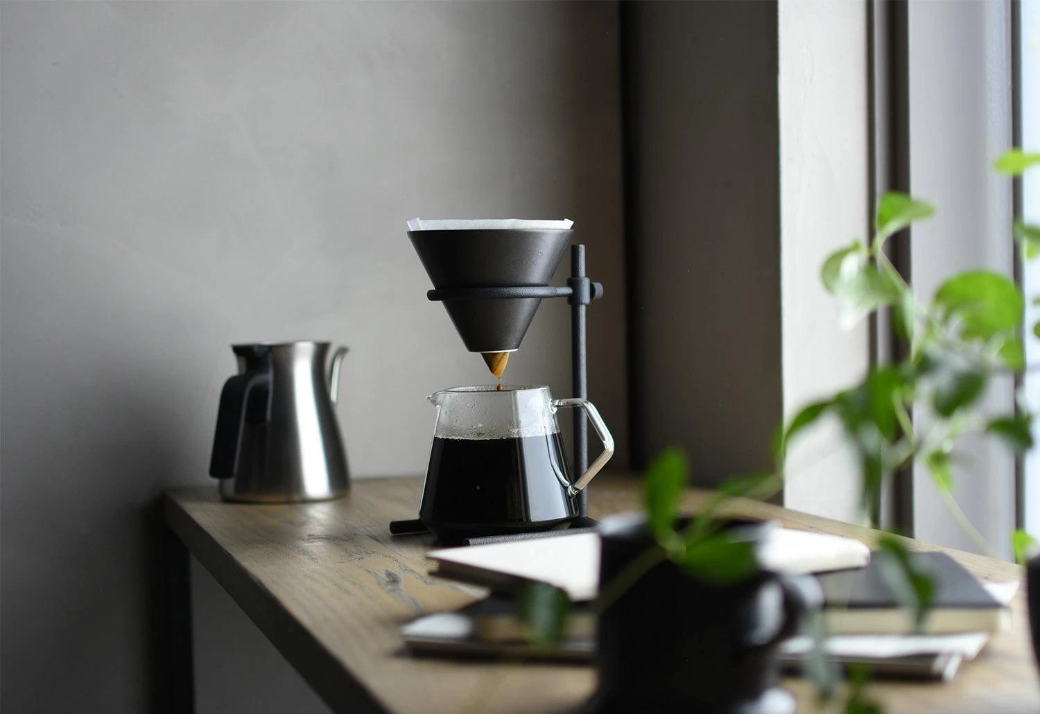 The Slow Coffee brewer stand set provides all you need for the ultimate pour-over coffee resulting in a richly tasting cup of coffee.