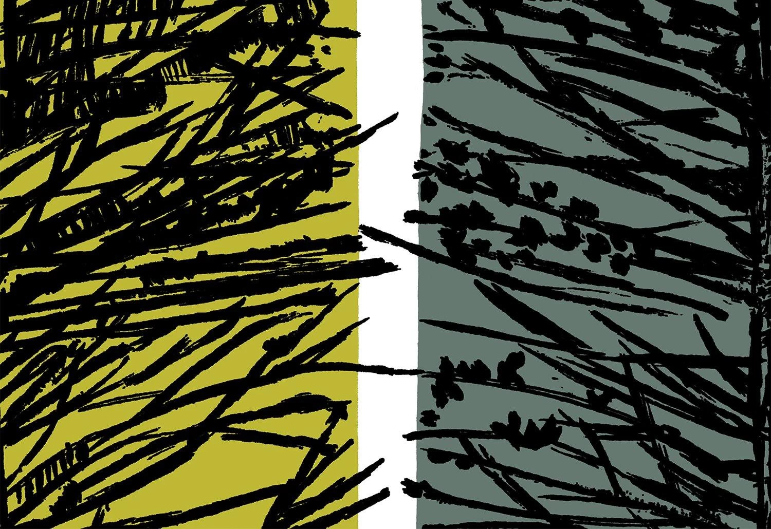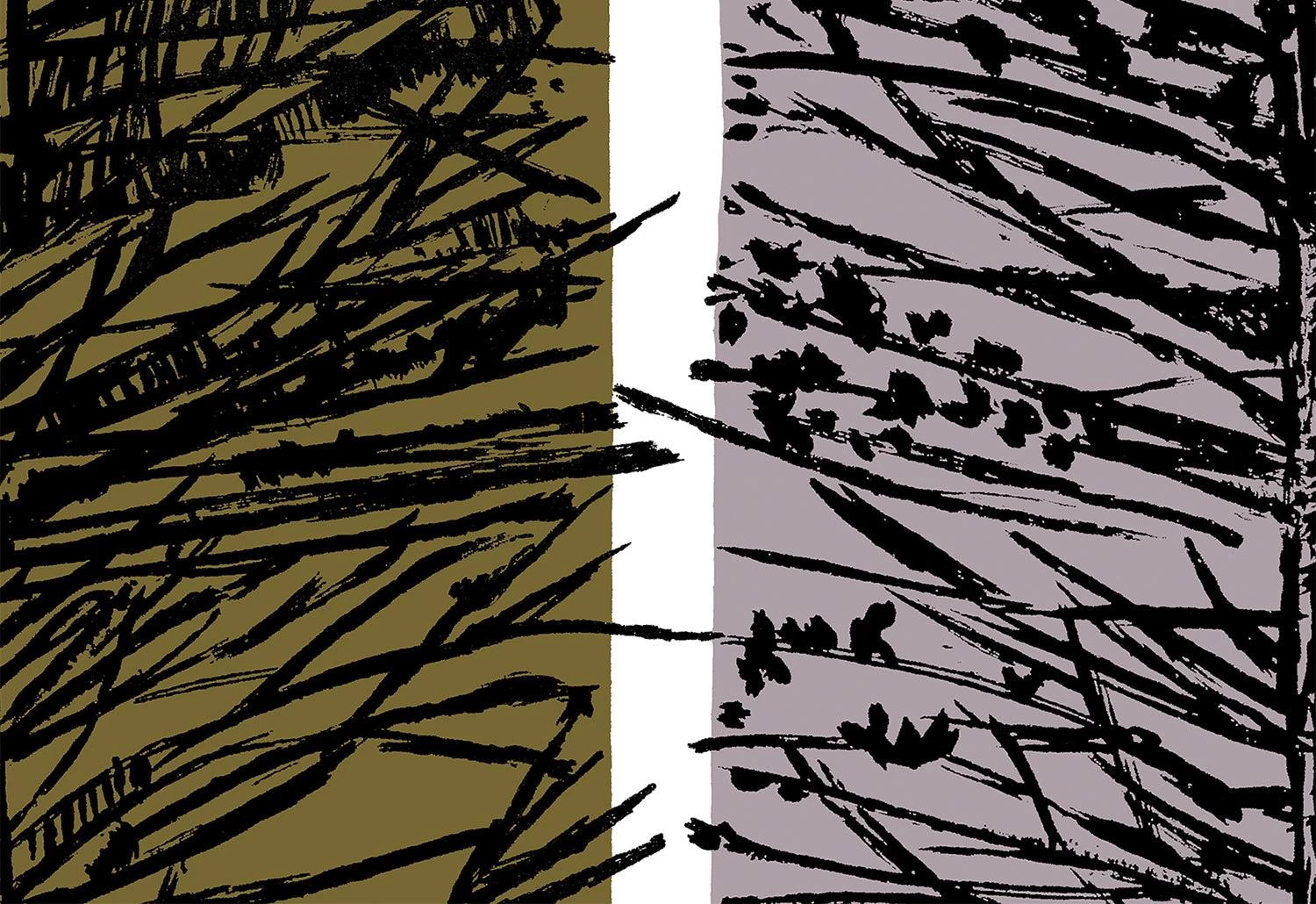 Lucienne, an avid gardener, was captivated by the form of plants. This fascination can be seen in her early designs, which often featured abstracted motifs of pods, stems, roots, flowers, petals, leaves, and seed heads, lending them a seemingly botanical quality. This is evident in Larch, which large-scale patterns of trees are divided into two distinct halves.