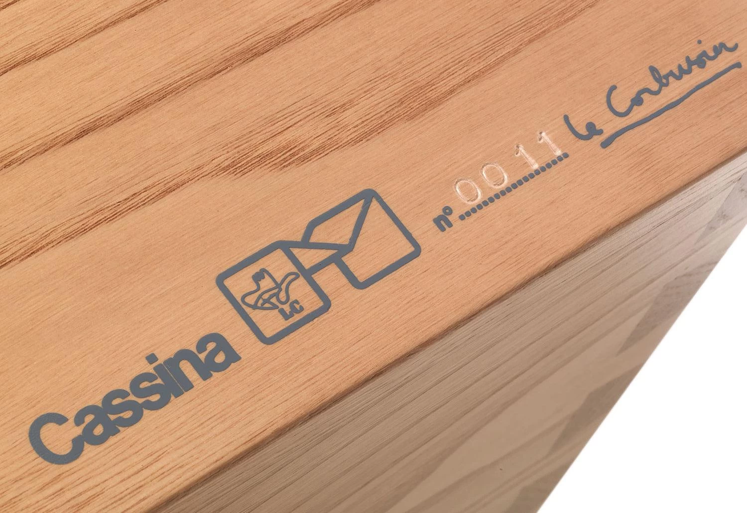 Le Corbusier solid wood stools designed in 1952, with practical openings on the two main sides to make it easy to handle. There are three models of the stool. The Tabouret stool Cabanon was designed in 1952 for the Cabanon, a hut built by Le Corbusier on the French Riviera, where alongside the many fixed furnishings, the furniture was all conceived as boxes. This stool has openings on each side.