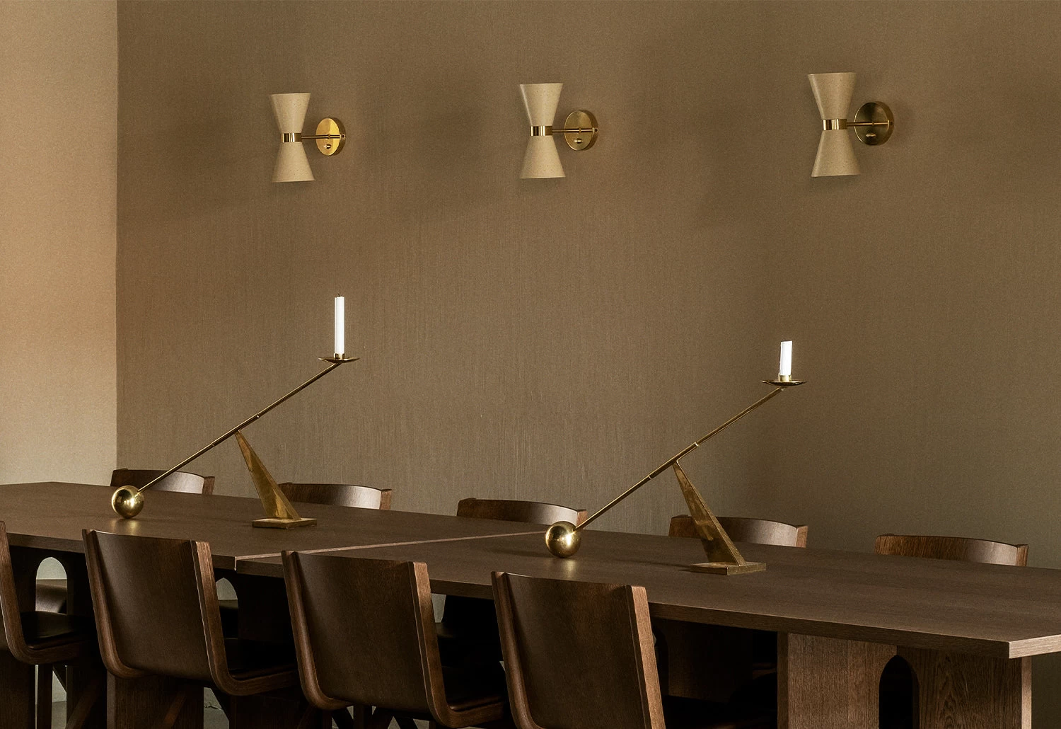 Designed in the 1950s by Swedish designer Alf Svensson, the Collector series is a timeless mid-century design lighting collection featuring a perforated conical-like shade design to fill spaces with cosy, ambient light.