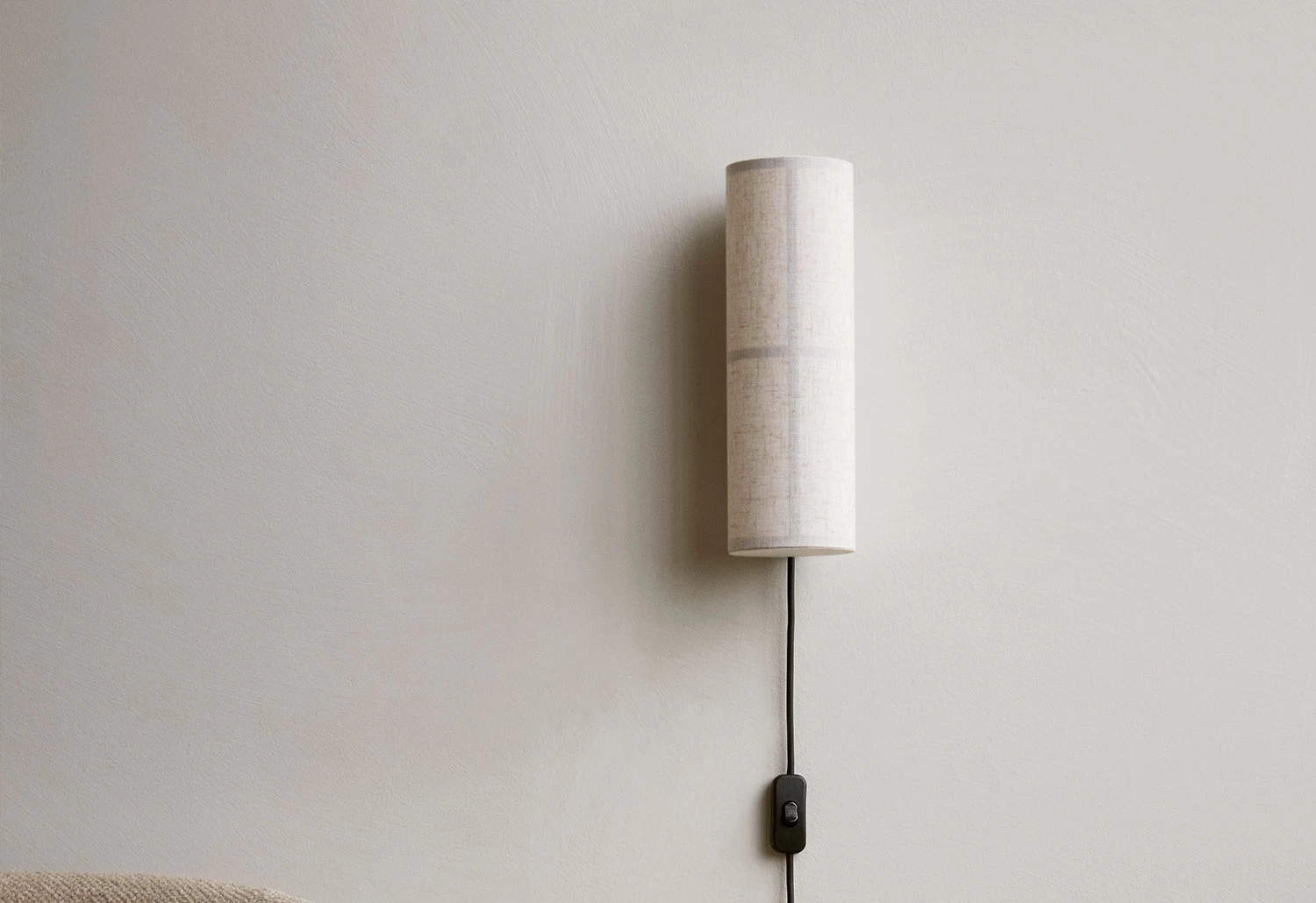 Perfect for subtle ambient lighting, the Hashira Wall Lamp features a translucent fabric shade with a black powder-coated steel wall mount. The pale linen shade acts as a diffuser, projecting the light in multiple directions while creating a cosy, glare-free ambience. The Hashira wall lamp looks elegant on the wall as above a bed or a sofa.