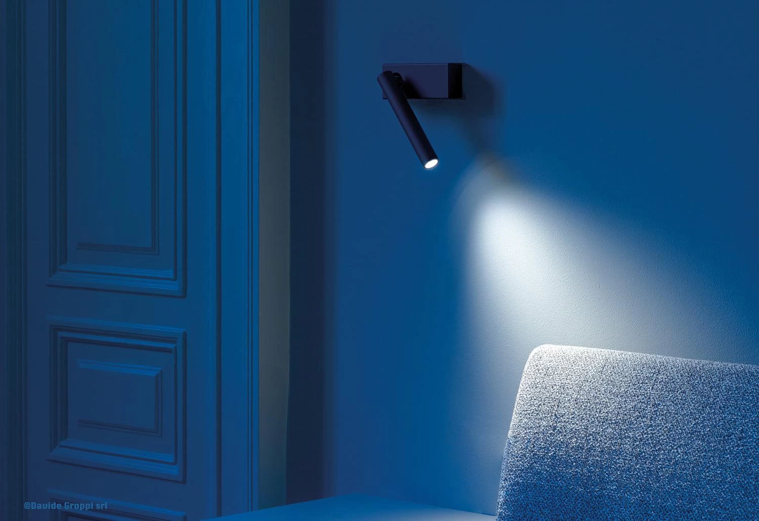 A graphic LED wall or ceiling light that distils its components to two essential forms – a cylindrical reflector and a rectangular base.