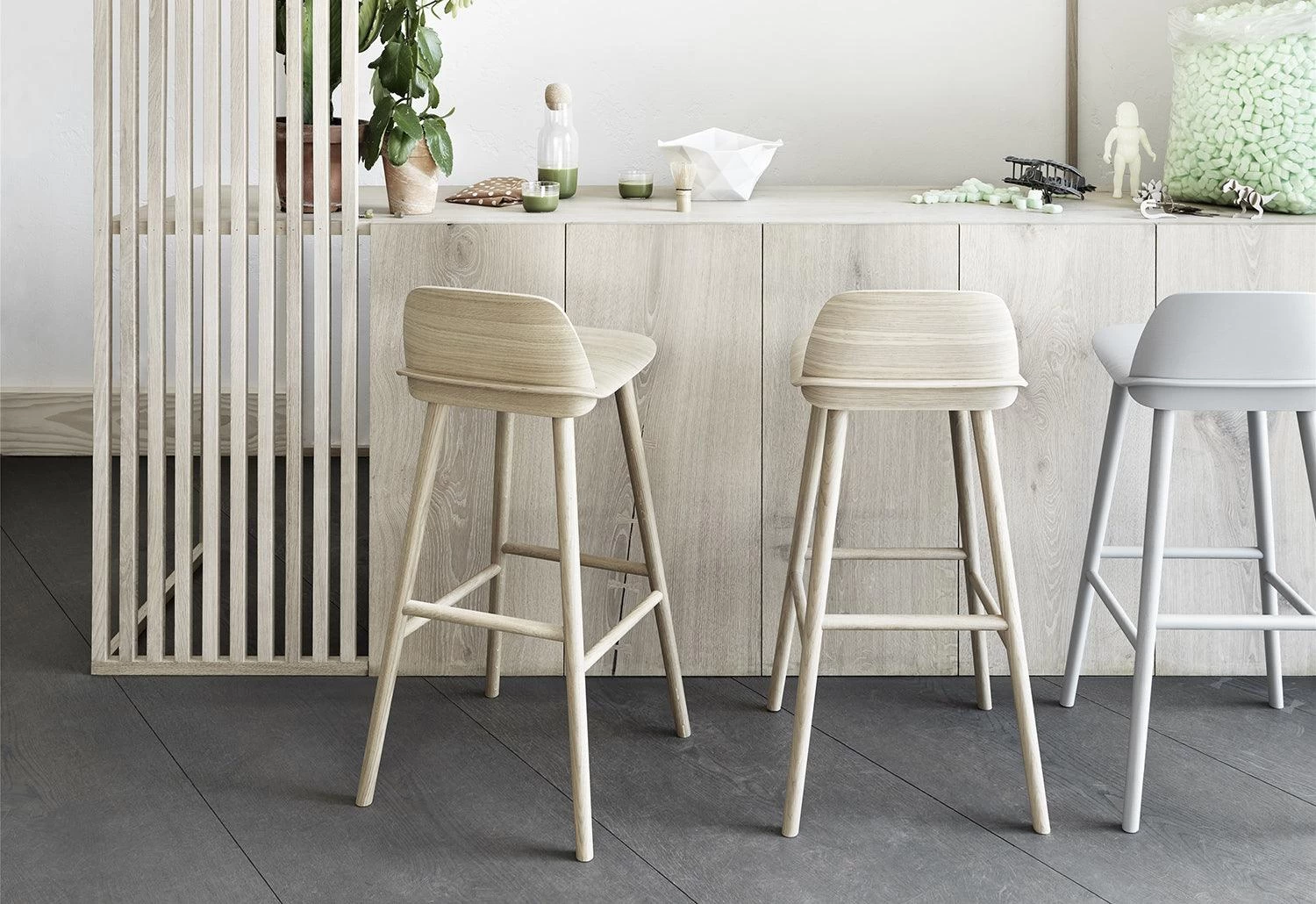 ‘The Danish simplicity and the iconic expression is combined with a classic perception of a solid barstool. The shape of Nerd barstool invites the user to sit on the stool from several angles, helped by the soft, curvy plywood shell. The low backrest of the barstool gives pleasant support and comfort’. David Geckeler