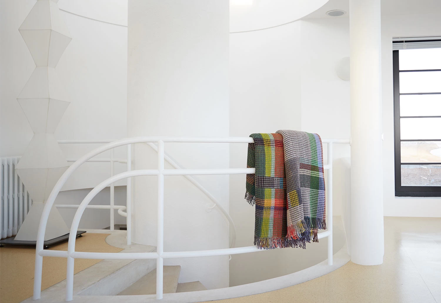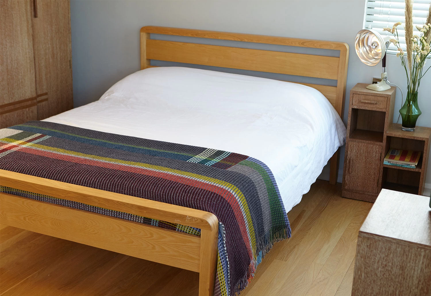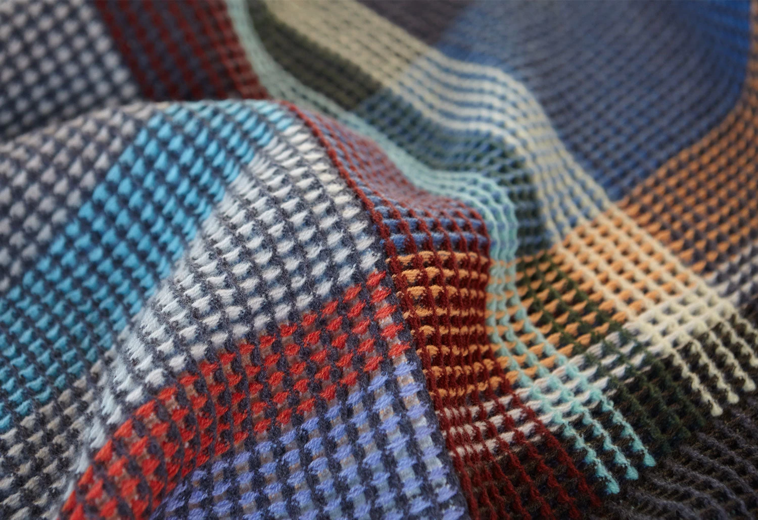 The honeycomb throw is woven in merino lambswool to create a bold, reversible piece, with a bouncy feel. The Octavia throw is available in two sizes.