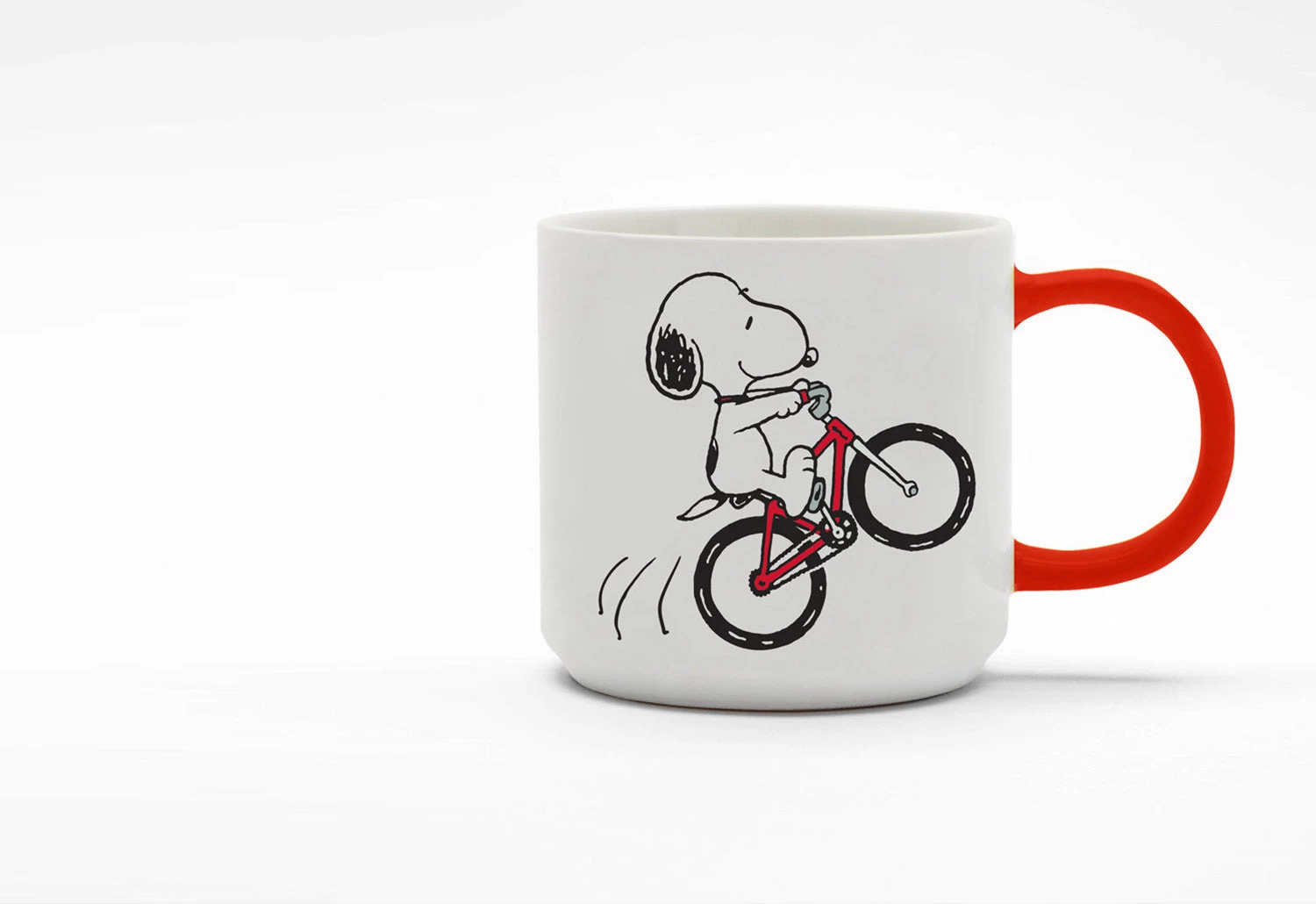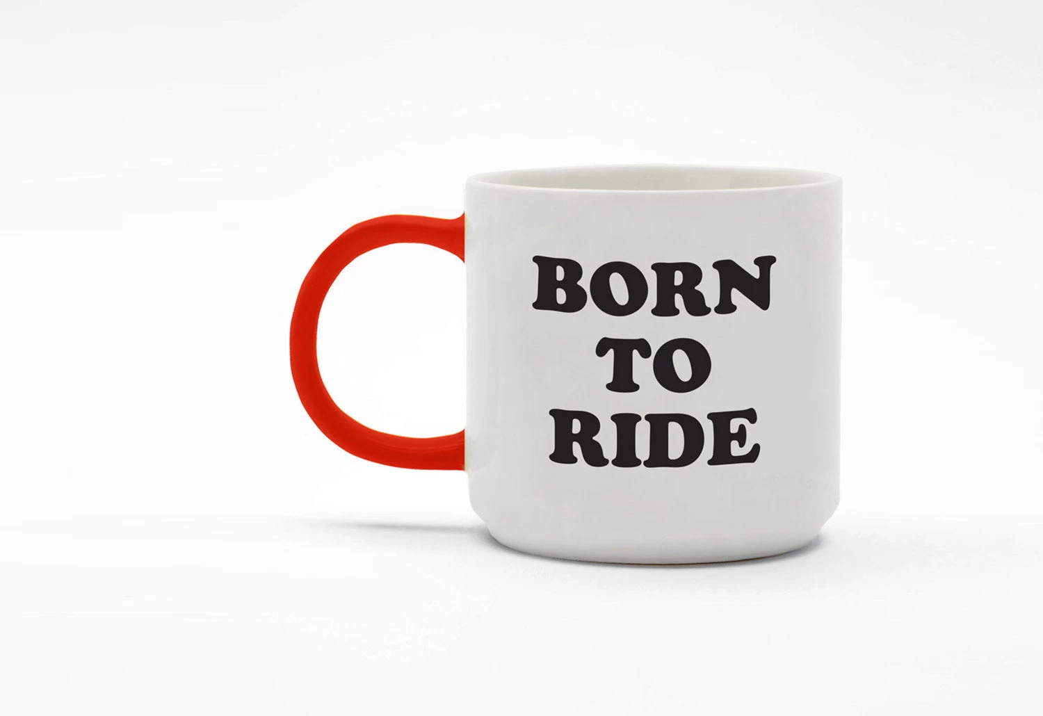 The Peanut Born To Ride mug features the Snoopy from the Peanut comic strip by Charles M. Schulz enjoying his bike ride. A perfect accessory for a morning coffee or tea, the playful mugs are made from vegan bone china by the official Peanut licensee Magpie.