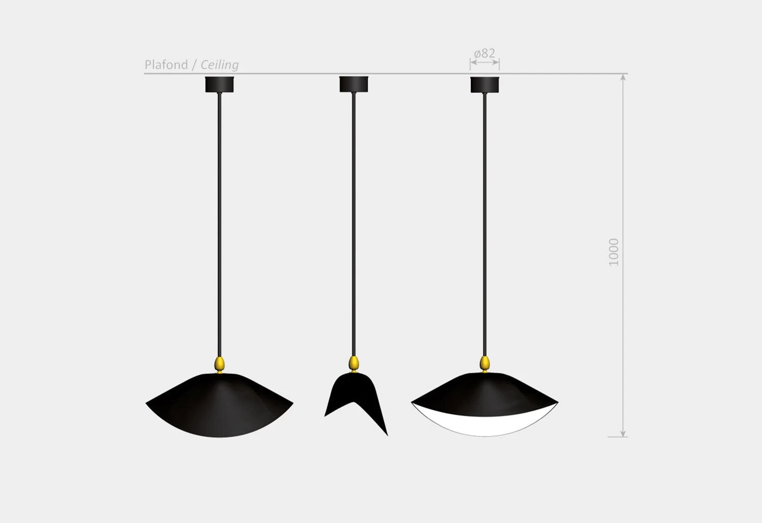 Plafonnier Pivotants was developed by Serge Mouille after the success of his earlier floor light, Lampadaire 3 Bras Pivotants. Like many of Mouille’s lamps of this era, the ceiling lights have a kinetic character, possessing a feeling of movement. Defined by its sculptural form, the lamp features a shell-like shade and a long arm.