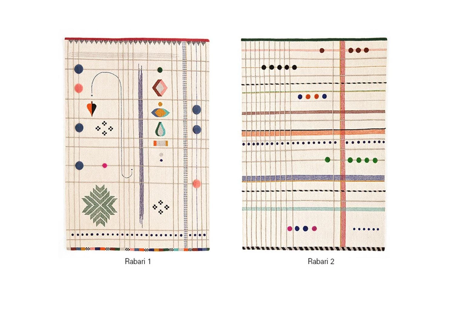 Over time, the rug has become a decorative element and a vehicle for cultural messages. Inspired by sensual and ornate Indian tribal folk embroidery, the Rabari rug is crafted with 100% New Zealand wool. Each rug is hand-knotted and hand-woven in India using the traditional Sumak technique.