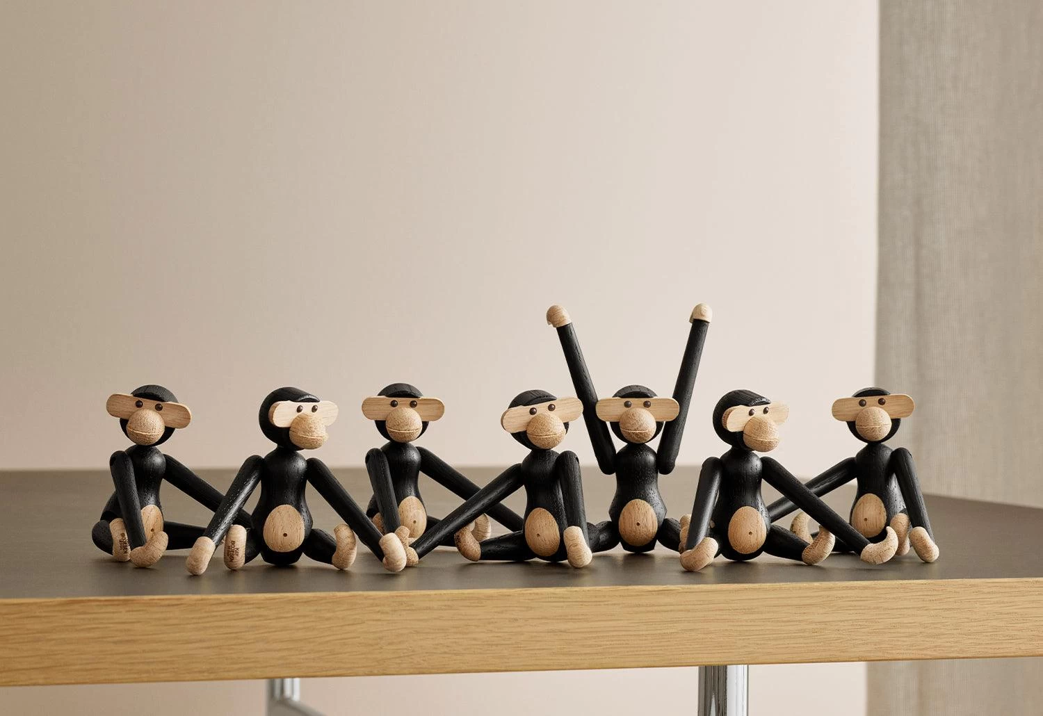 The wooden mini monkey is the younger sibling of the world-renowned Kay Bojesen wooden monkey, a design classic for children and adults alike.