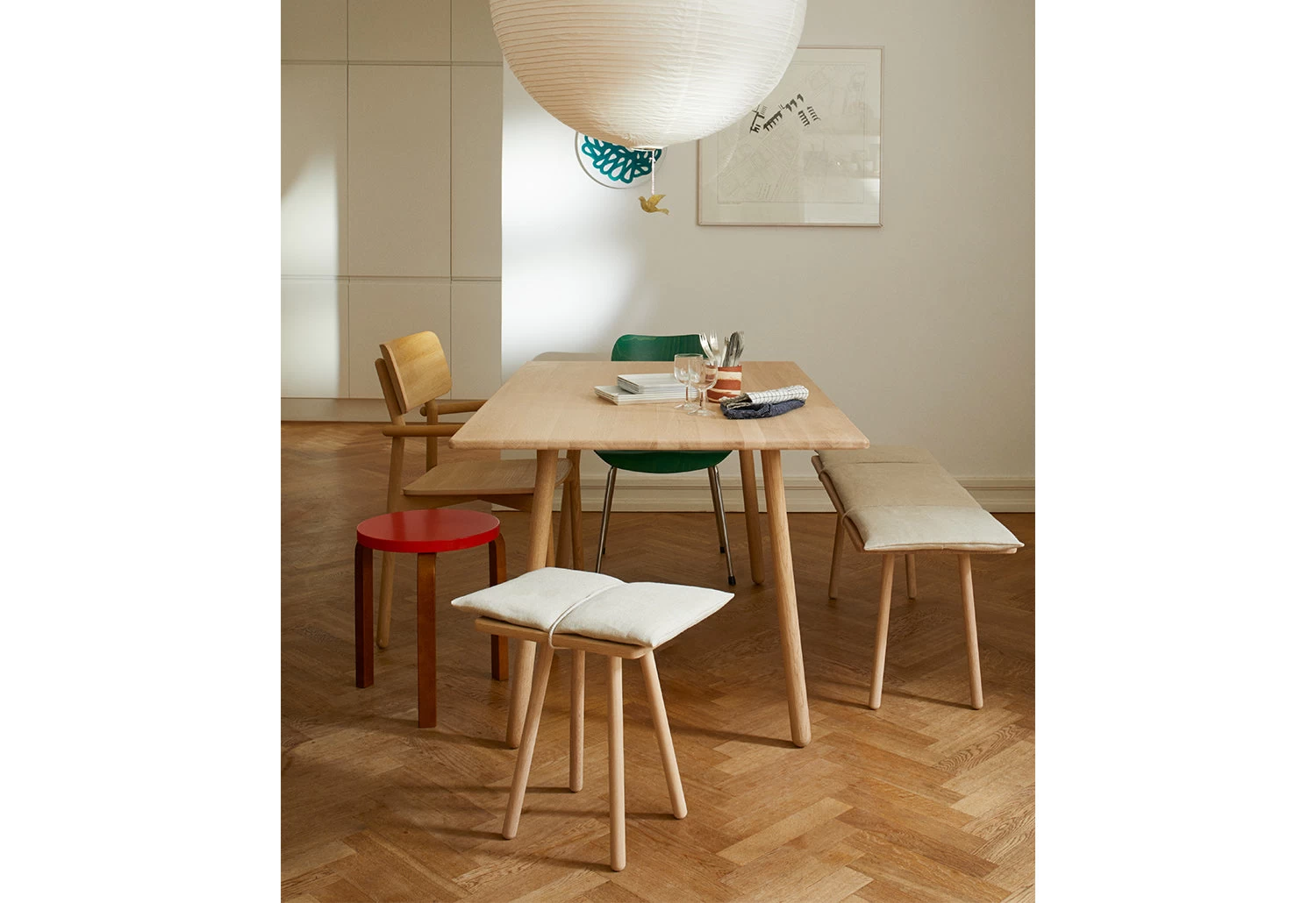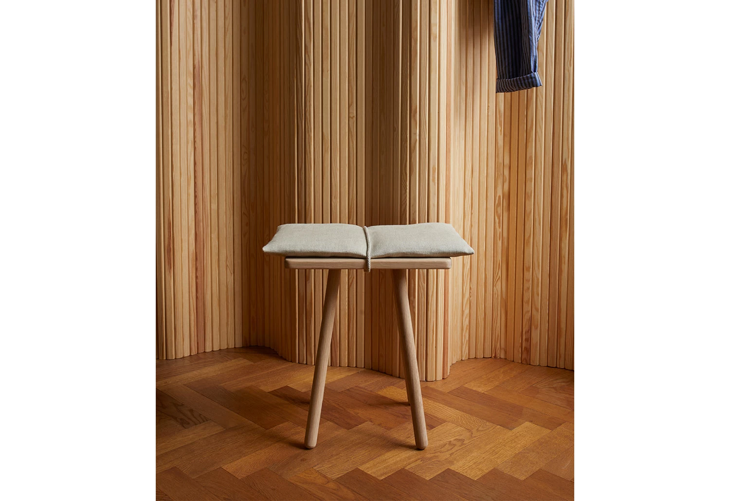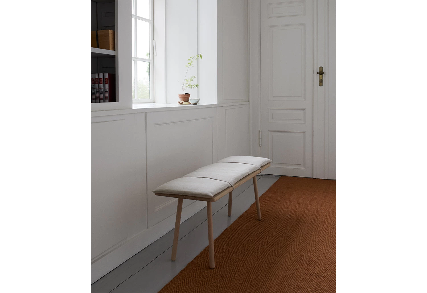 The Georg cushion is a separate cushion with a strap for the Georg Stool, Bar Stool and bench. Upholstered in a soft Remix 2 wool fabric or in natural linen fabric, the cushion also comes with a leather or flax strap to place the cushion on the seat.Â