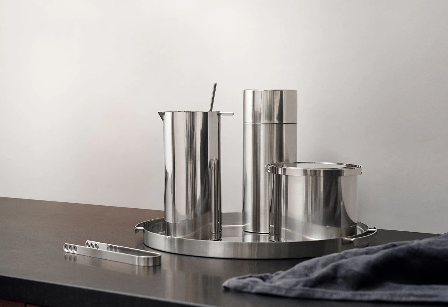 The Arne Jacobsen ice bucket boasts an eye-catching and sophisticated minimalist aesthetic. Crafted from double-walled stainless steel, this ice bucket effectively isolates ice and is available in a 1-litre size. For a fully coordinated look, complement it with the timeless and iconic Arne Jacobsen Cocktail Shaker from the Cylinda-line series.