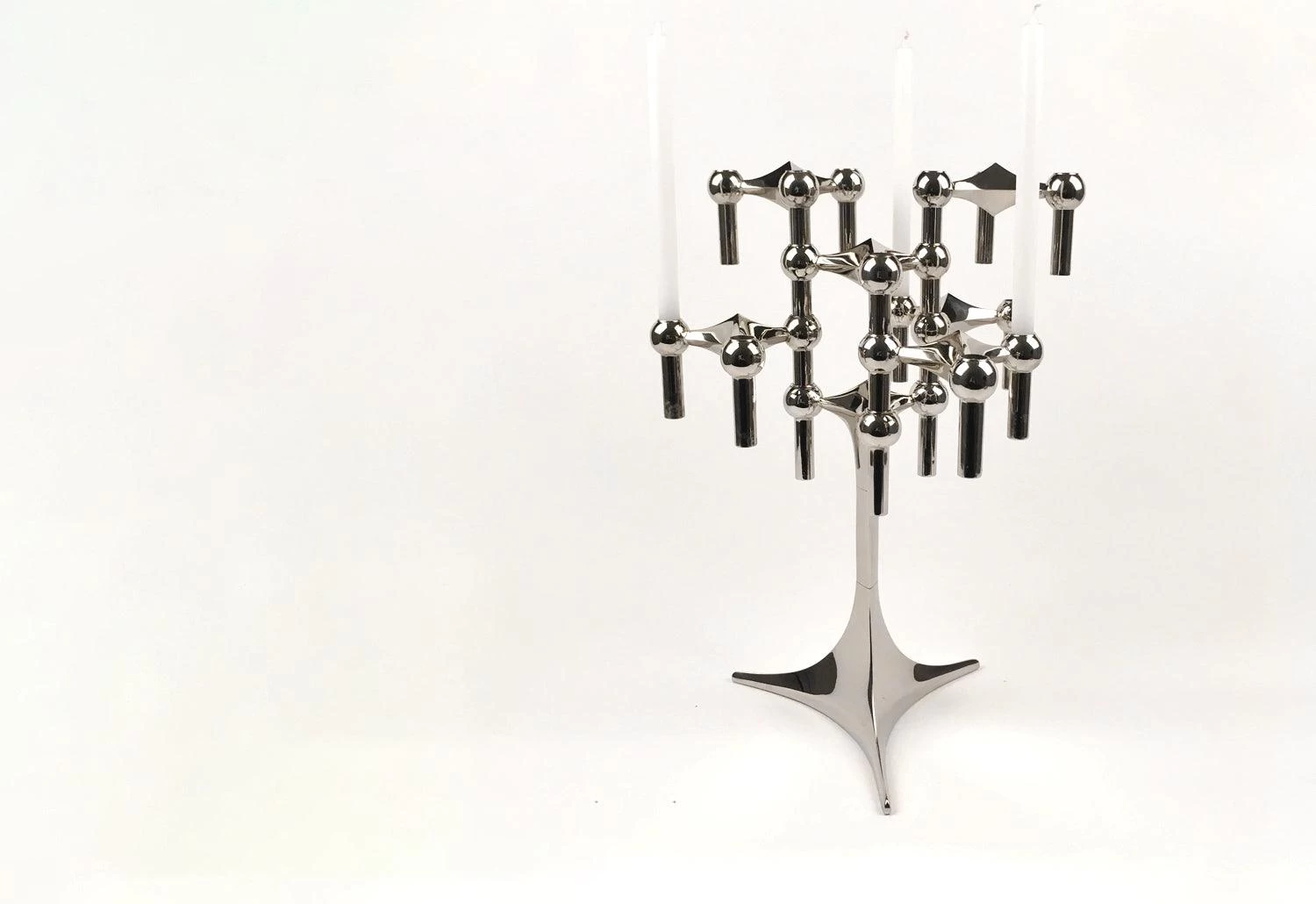 The Stoff Nagel candle system is a classic of mid-century design, conceived by German architect Werner Stoff in the 1960s. Previously only available as a sought-after vintage item, the candlestick system has now been reissued by Scandinavian design house Just Right.Â