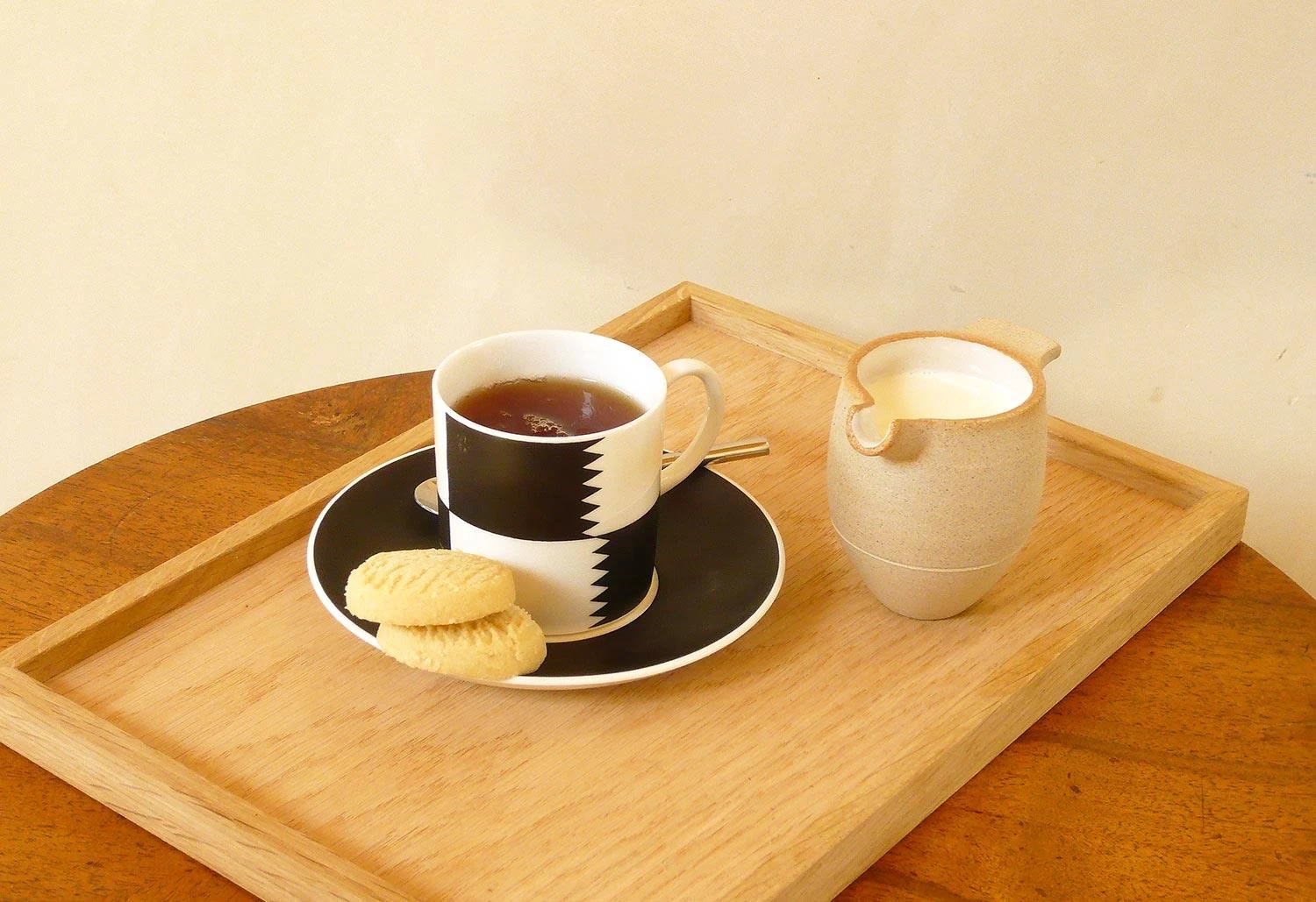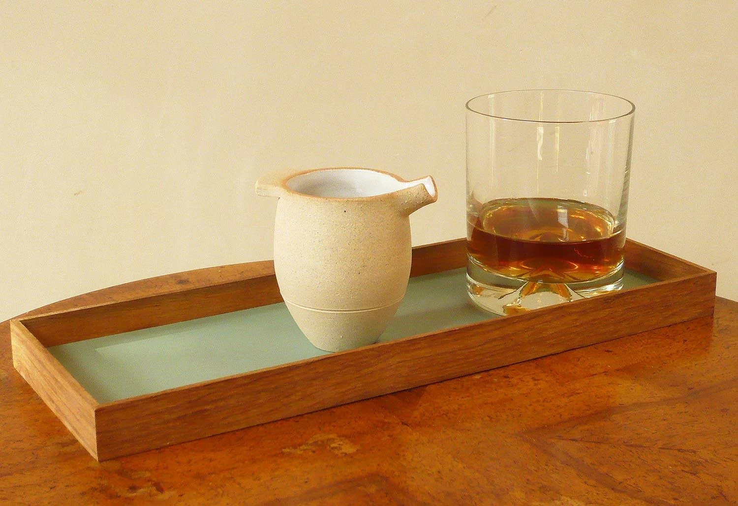 The pourer is a small jug with a distinctive sculptural form.