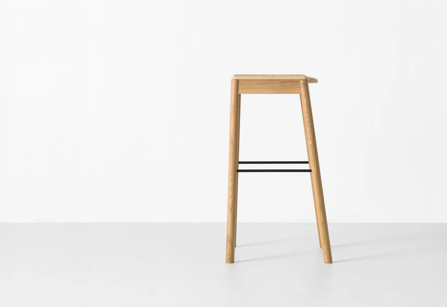 Made from solid oak, the Tangerine bar stool is an addition to the popular Tangerine family. A lightweight and streamlined appearance is tempered by the robustness of steel crossbars, making the product ideal for contract use.