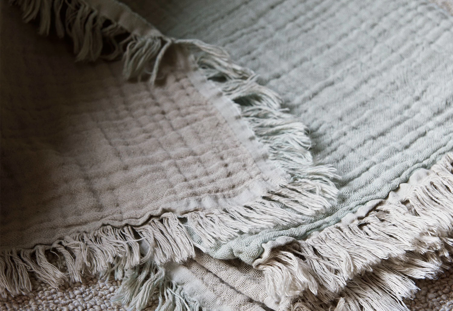 The Collect Cotton Throw is designed by Space Copenhagen and comprises three layers of finely woven organic cotton. The layers are joined with tiny stitches, giving the throw a unique, crinkled effect.