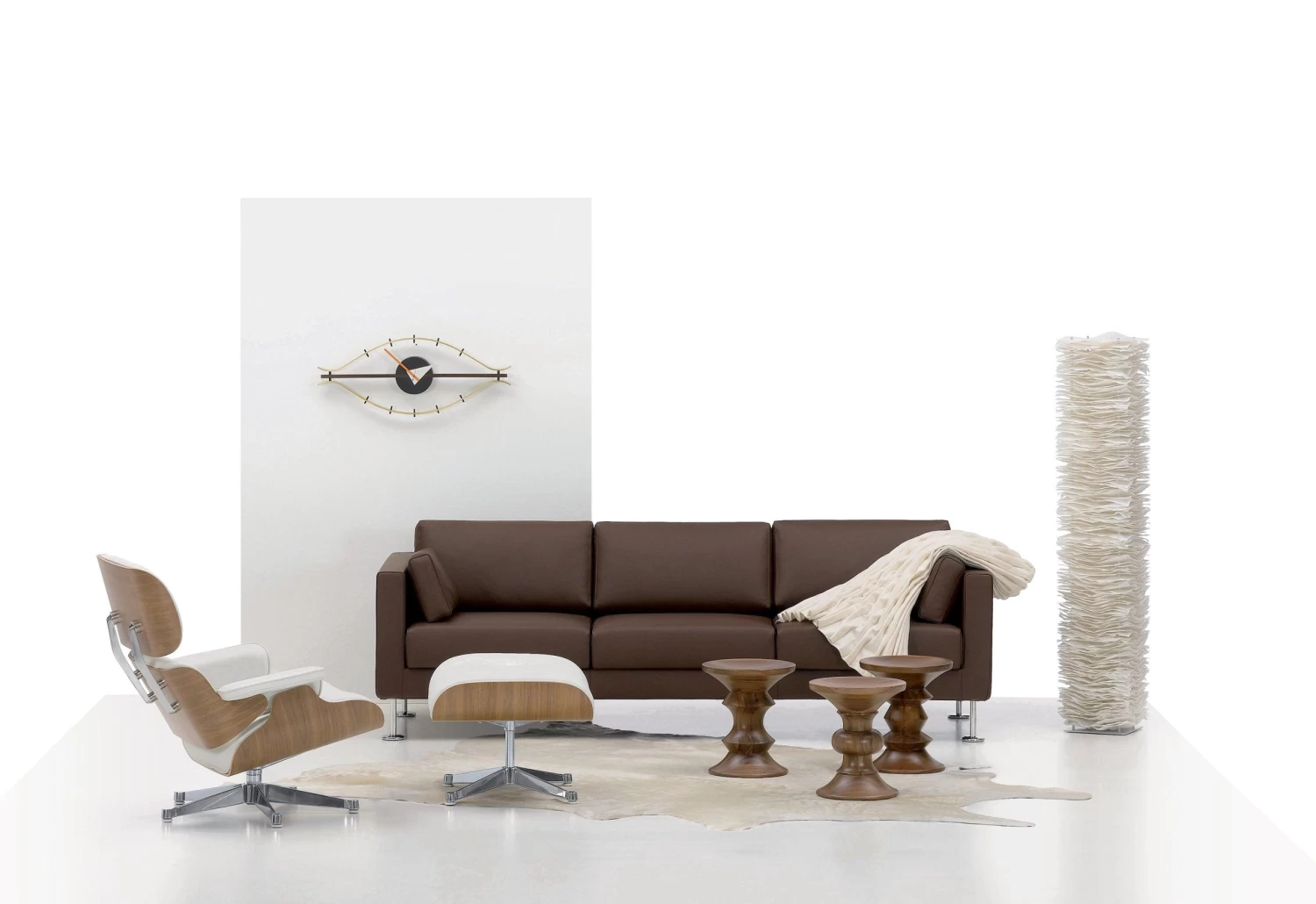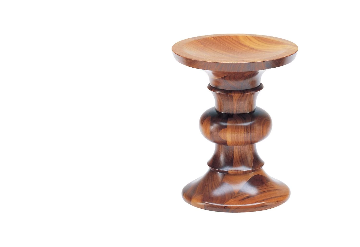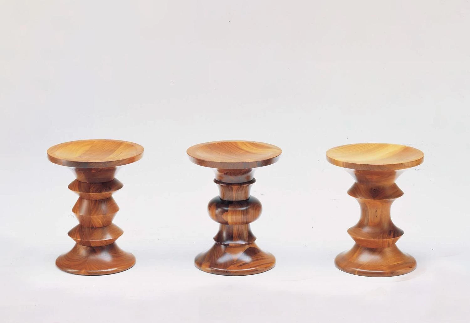 In 1960 the Eames office was commissioned by Time Inc. to fit out three lobbies in the Rockefeller Center in New York. As well as complete interior fixtures and fittings the project included the comfortable Lobby Chairs and a series of solid walnut stools. These turned stools which (as Ray Eames originally intended) can also be used as occasional tables have three different design details in their centre sections.