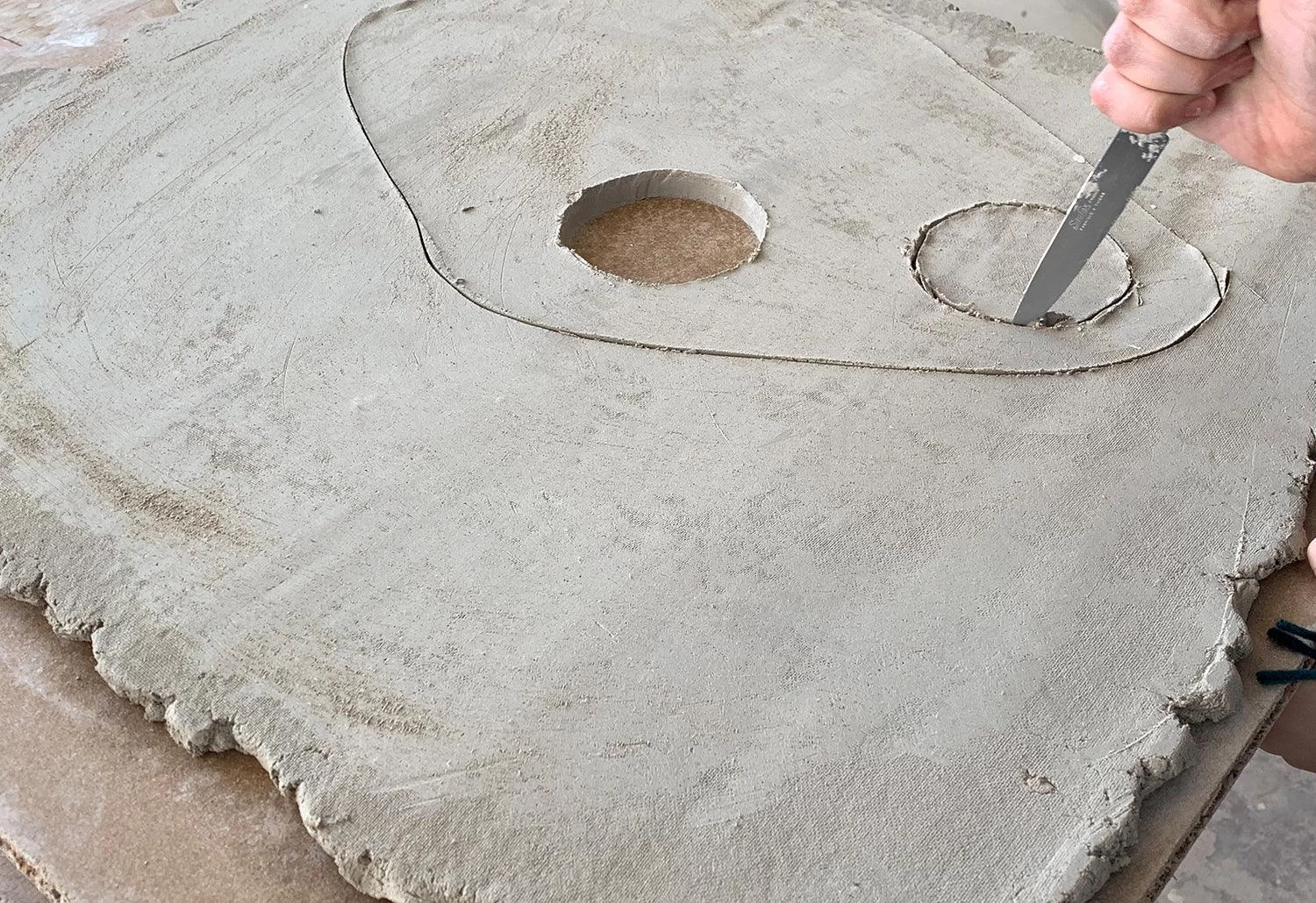 The uniformity of the cylinder, the diversity of colour and the irregular form of each slab creates a playful balance, inviting rearrangement of the elements to create personal and lively compositions.